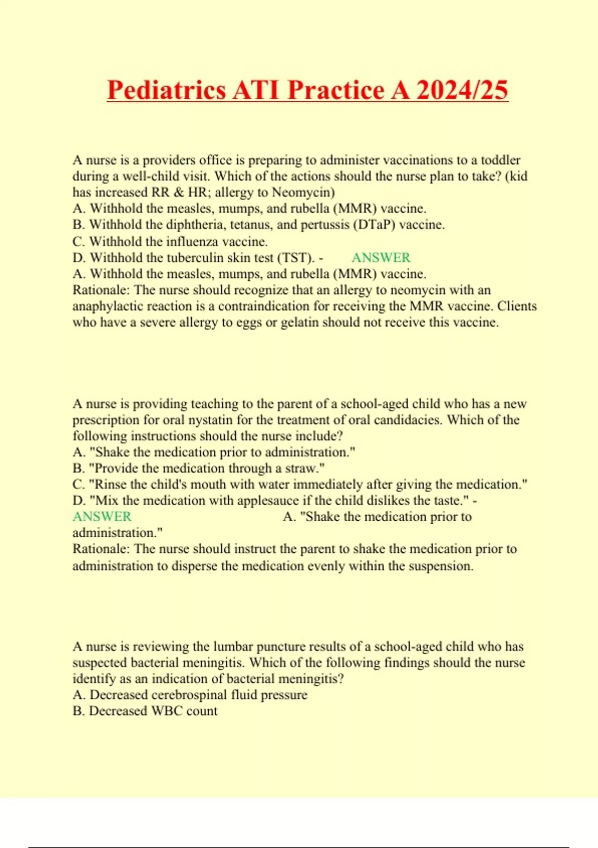 Exam (elaborations) Peds ATI Proctored Exam Dynamic Quizzes 2 Exam (elaborations) RN ATI PEDS CMS 2024 3 Exam (elaborations) Peds ATI Practice B Online 4 Exam (elaborations) ATI Capstone Pediatrics QUESTIONS AND ANSWERS 2024/25 5 Exam (elaborations) 2024 PEDS ATI Proctored Exam 6 Exam (elaborations) ATI Peds proctored exam 2024/25 7 Ex