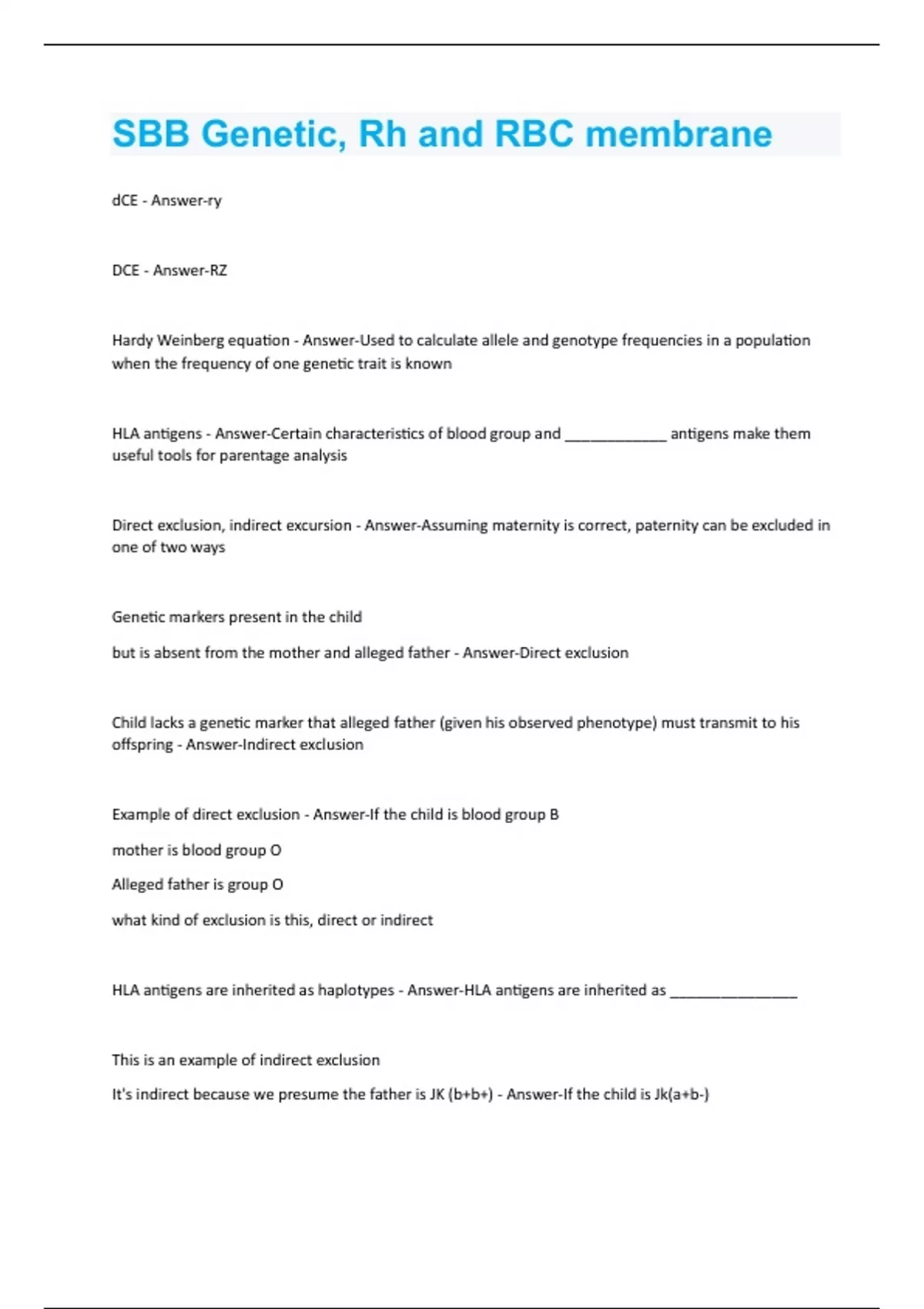 SBB Genetic, Rh and RBC membrane Exam Questions With Correct Answers