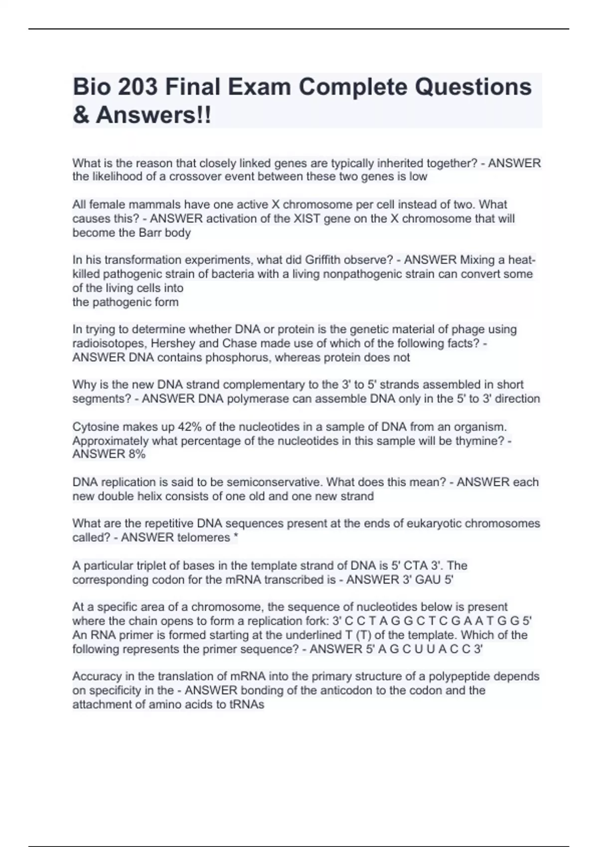 Biology 203 Final Exam Study Guide 100% Accurate(COMPLETE FULL PACK SOLUTION!!!!)EXAM BUNDLEBiology 203 Final Exam Study Guide 100% Accurate(COMPLETE FULL PACK SOLUTION!!!!)EXAM BUNDLEBiology 203 Final Exam Study Guide 100% Accurate(COMPLETE FULL PACK SOLUTION!!!!)EXAM BUNDLEBiology 203 Final Exam Study Guide 100% Accurate(COMPLETE FULL PACK SOLUTI