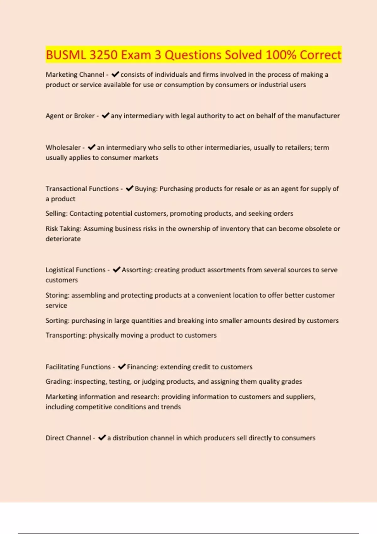 BUSML 3250 Exams Bundle with Questions Solved 100% Correct