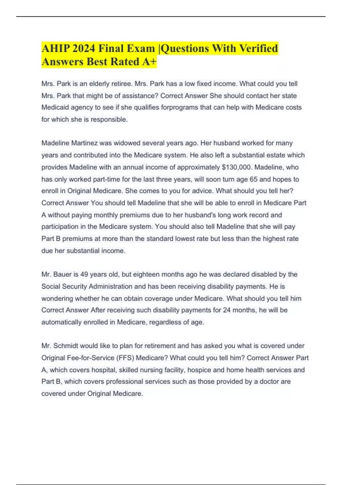 AHIP 2024 Final Exam Questions And Verified Solutions |Latest Update |Rated A+ AHIP 2024 Final Exam |Questions With Verified Answers Best Rated A+