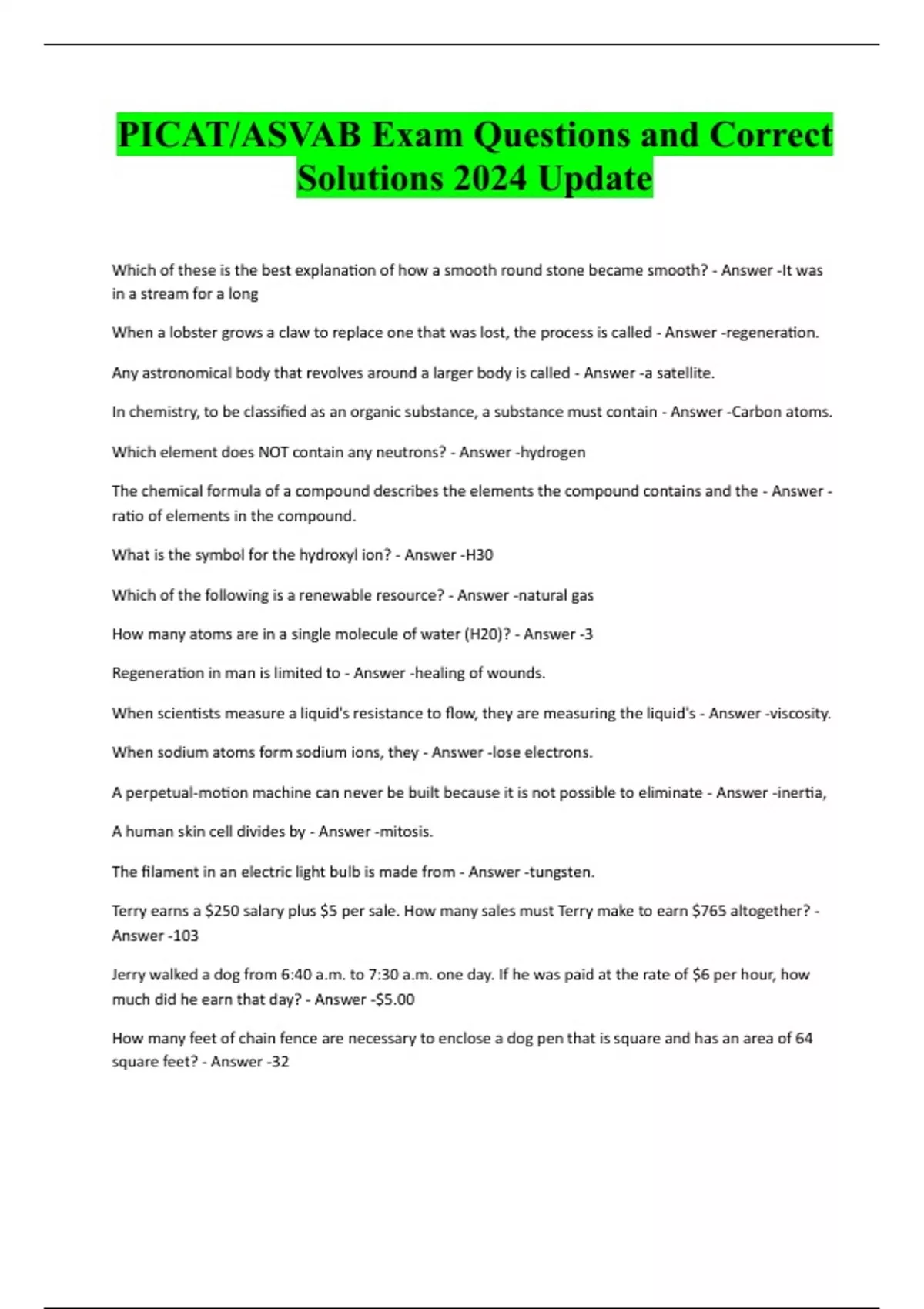PiCAT BUNDLED Exams and Verified Solutions 2024 | 2025. Pre-ASVAB GO Navty, General science, mathematical knowledge, practice test,