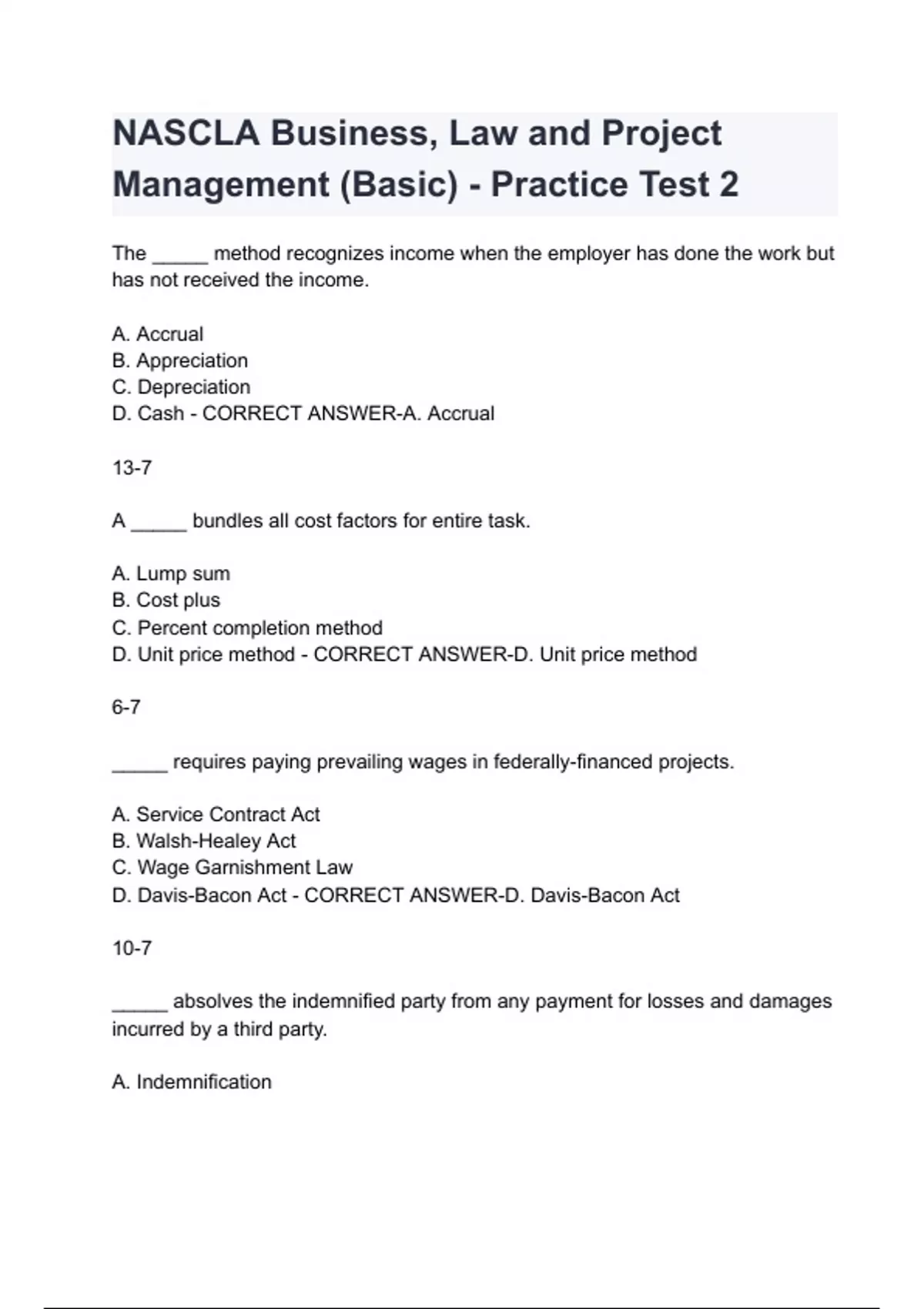 NASCLA Business, Law and Project Management (Basic) - Practice Test 2