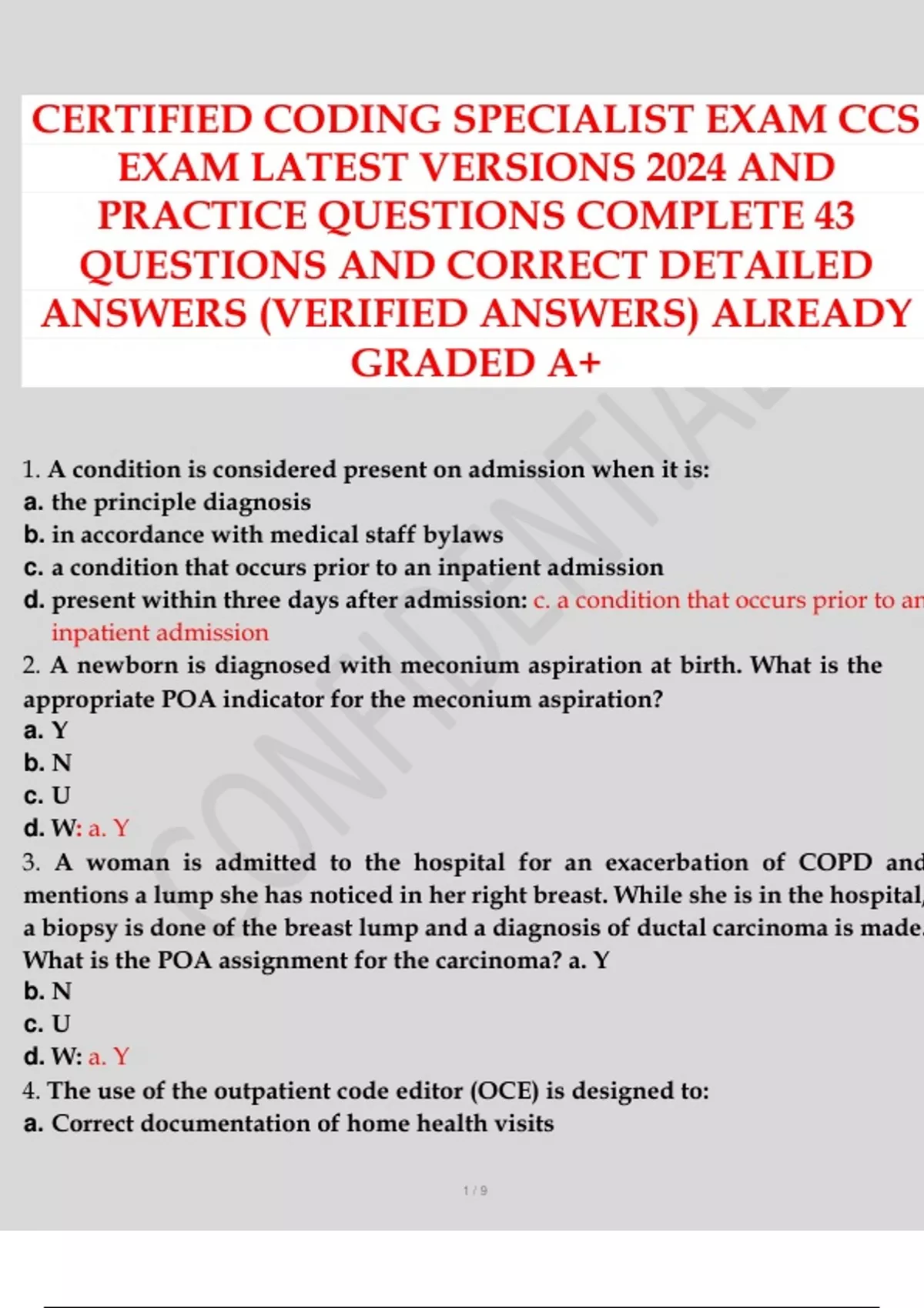 BUNDLED CERTIFIED CODING SPECIALIST EXAM CCS EXAM LATEST VERSIONS 2024 AND PRACTICE QUESTIONS AND ANSWERS VERIFIED AND ALREADY GRADED A+