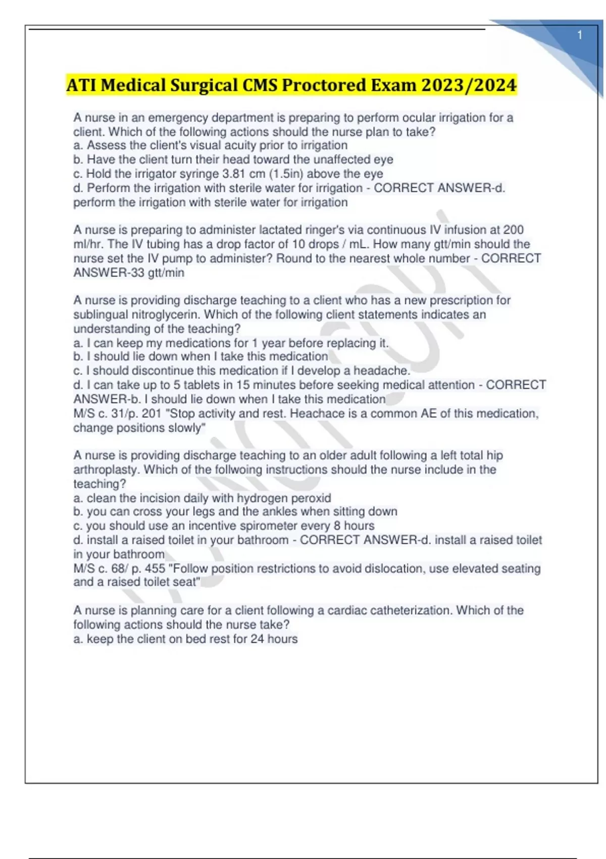 ATI Medical Surgical CMS Proctored Exam 2023/2024
