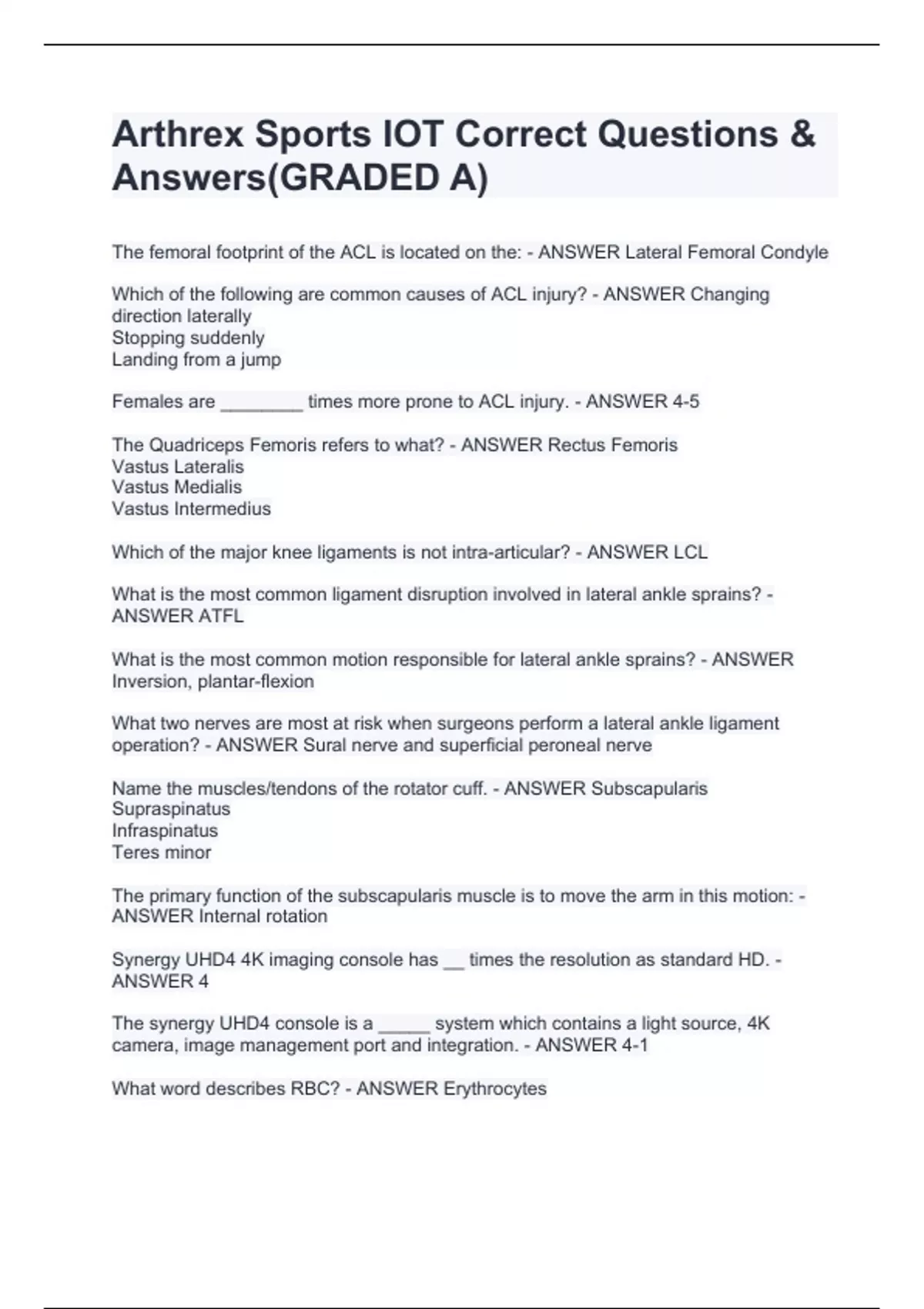 Arthrex Sports IOT Correct Questions & Answers(COMPLETE FULL SOLUTIONS PACK!!!!)EXAM BUNDLE