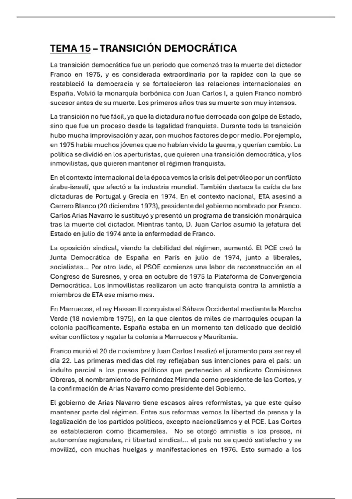 Sumario Resumen transición democrática - Historia de España - Selectividad