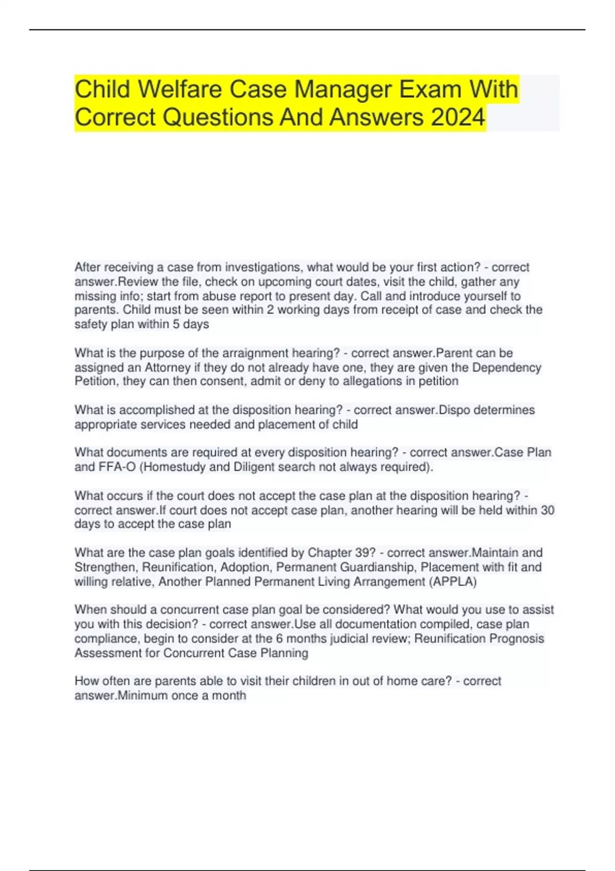 A package deal for Child Welfare Case Manager Exam With Correct Questions And Answers 2024