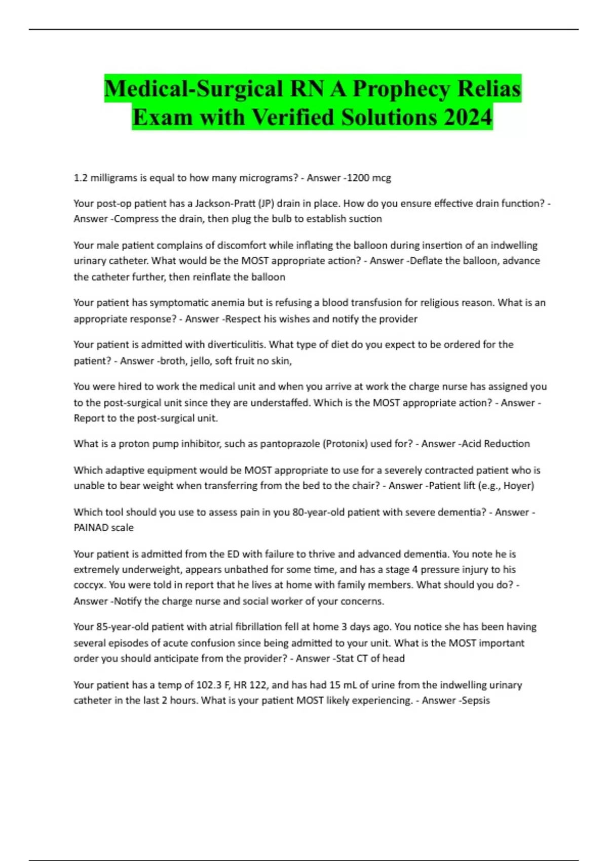 RN Relias Prophecy Complete BUNDLED Exams with Correct Solutions 2024 | 2025. core mandatory part2, part 3, medical surgical, training exam,