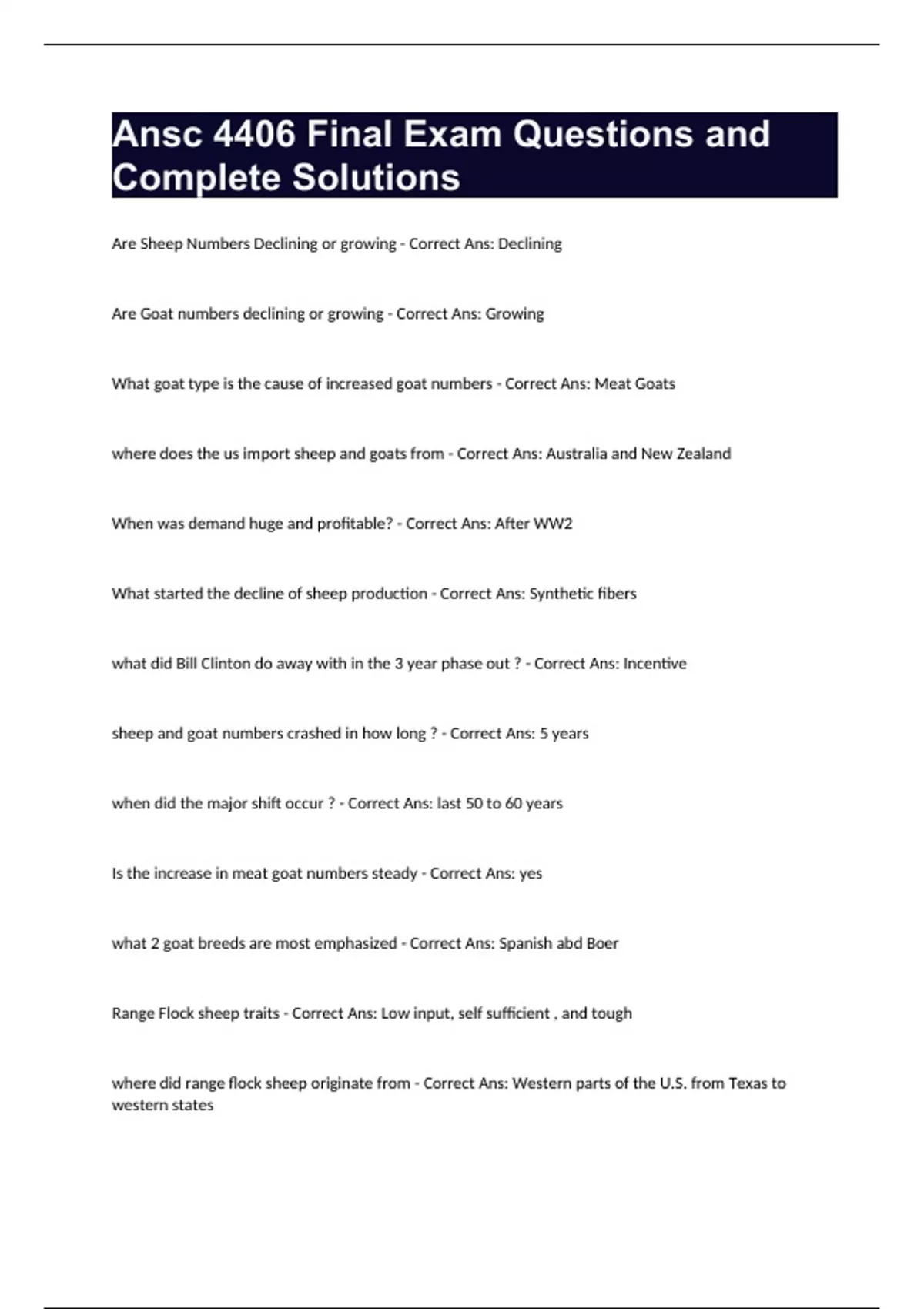 Ansc 4406 Final Exam Questions and Complete Solutions Bundle Compilation Graded A+