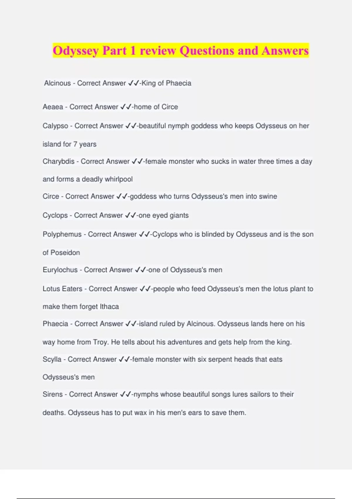 The Odyssey Part 1 Study Questions with 100% Correct Solutions