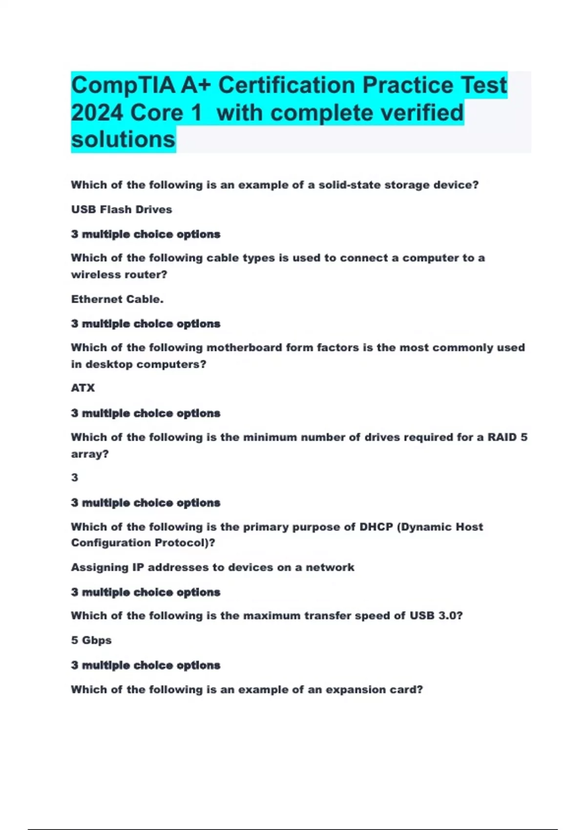 CompTIA A+ Certification Practice Test 2024 Core 1 with complete verified solutions