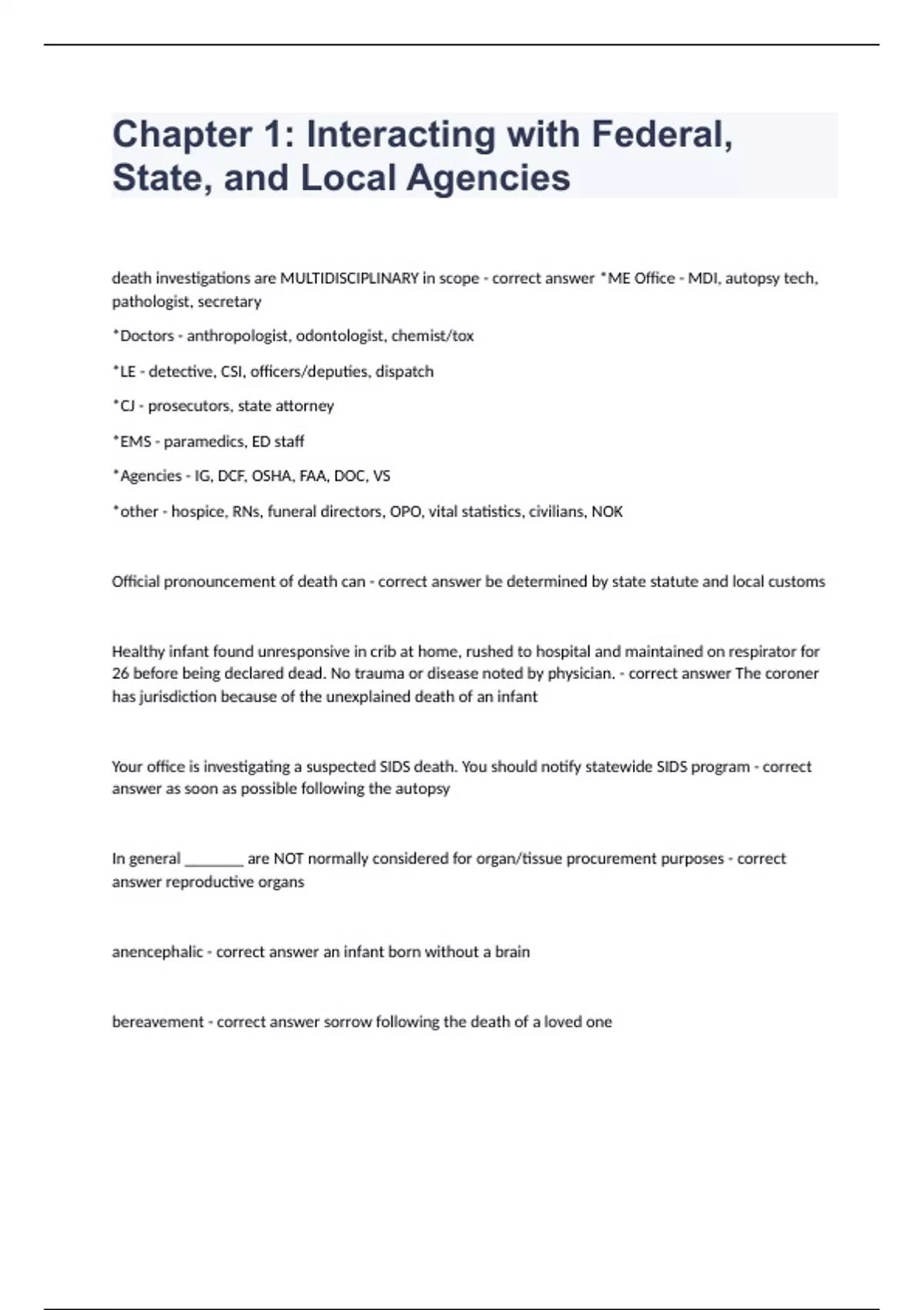 ABMDI - Investigating Deaths Question and answers 100% correct 2024 Exam (elaborations) ABMDI Board Certification Question and answers rated A+ 2024 Exam (elaborations) ABMDI Book Vocabulary Questions with complete solution 2024 Exam (elaborations) ABMDI chapter 1 Question and answers correctly solved 2024 Exam (elaborations) ABMDI Chapter