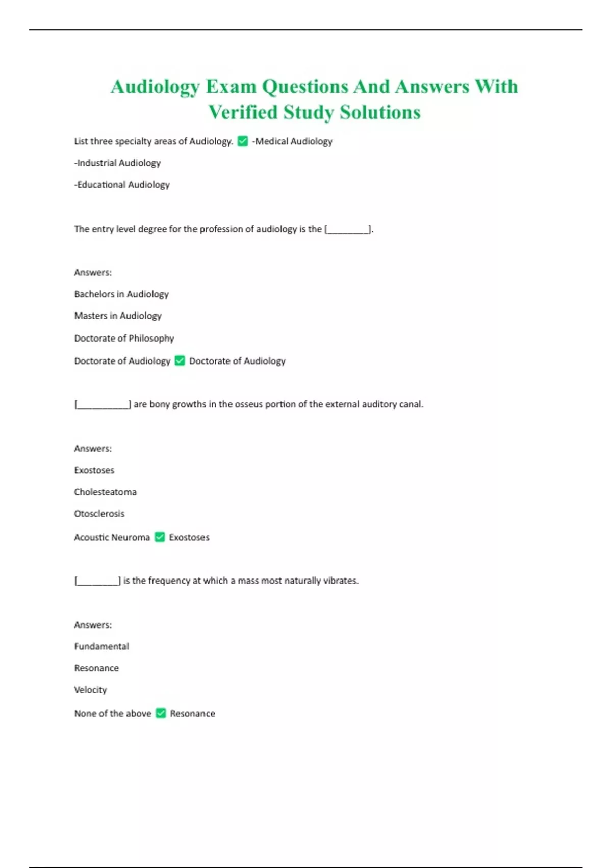 Package Deal For Audiology With Verified Study Solutions ( questions and answers ) Full Course Updates