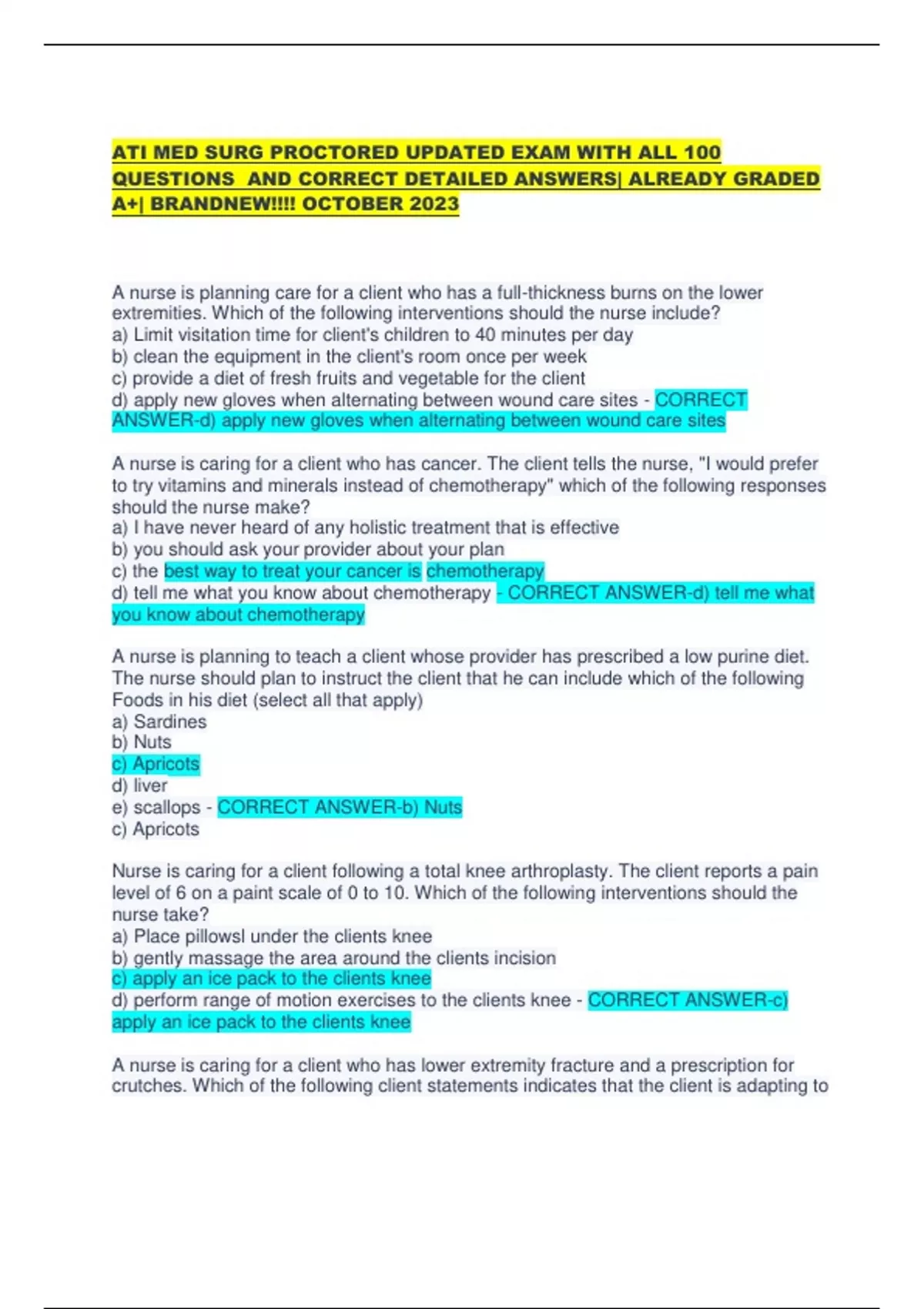 1 Exam (elaborations) RN 2019 LEADERSHIP ATI WITH QUESTIONS AND CORRECT DETAILED ANSWERS (VERIFIED ANSWERS) ALREADY GRADED A+||NEWEST UPDATES 2024 2 Exam (elaborations) ATI RN MEDSURG 2024 PROCTORED EXAM QUESTIONS WITH RATIONALE QUESTIONS WITH CORRECT ANSWERS|| ALREADY GRADED A+ 3 Exam (elaborations) ATI RN MEDSURG 2024 PROCTORED EXAM QUESTIONS W
