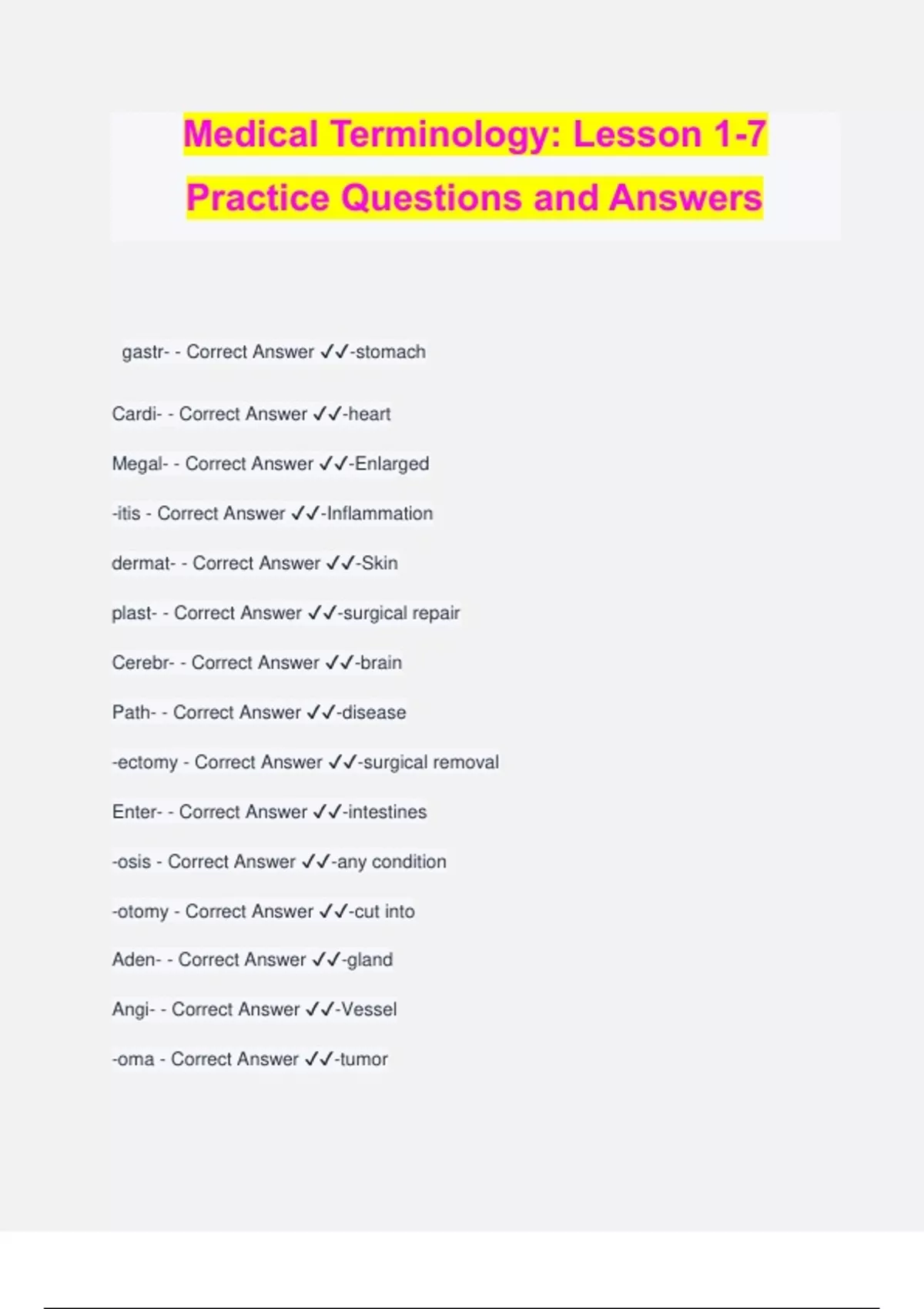 Medical Terminology: Lesson 1-7 Practice Questions and Answers