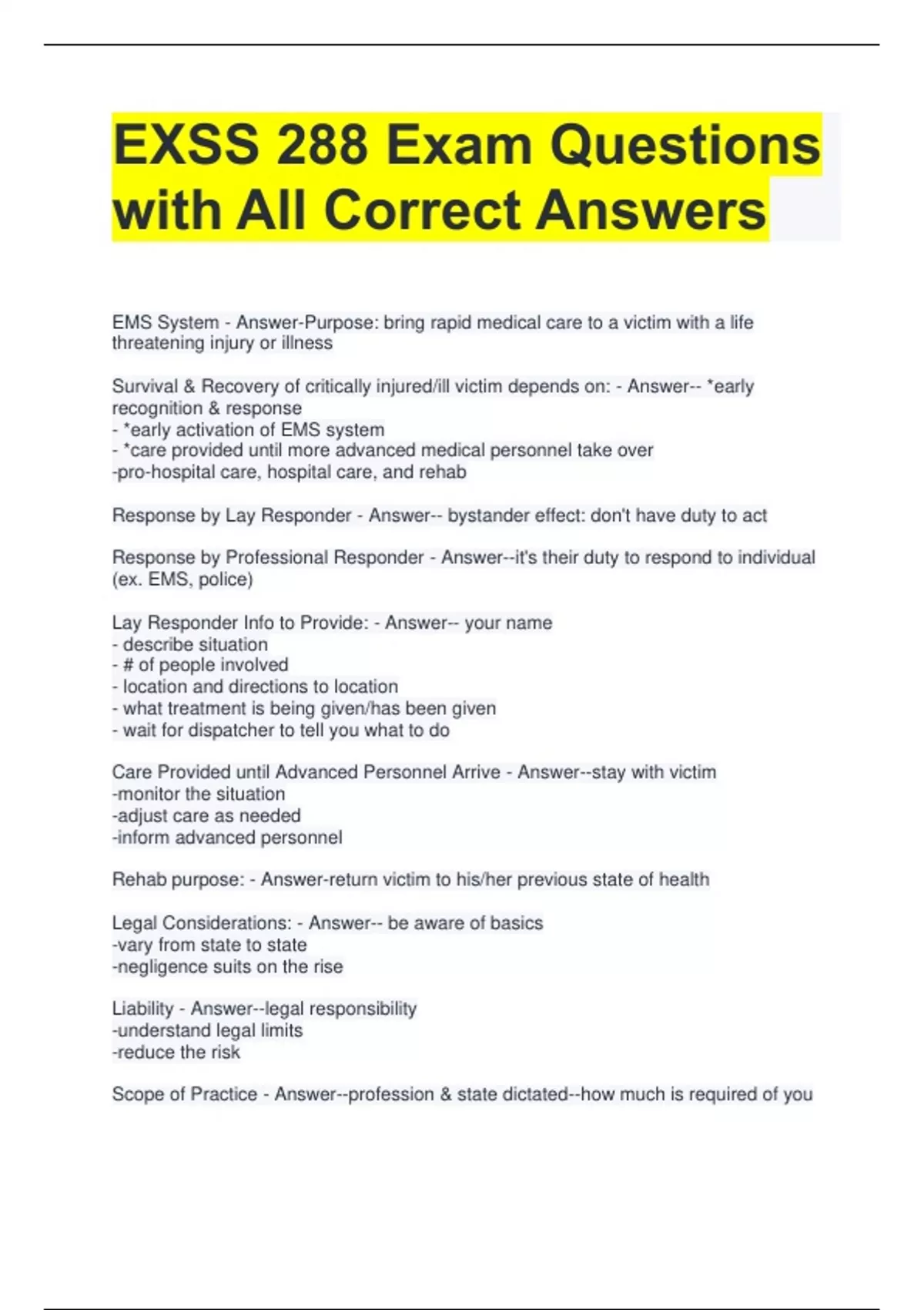 Bundle For EXSS 288 Exam Questions with All Correct Answers