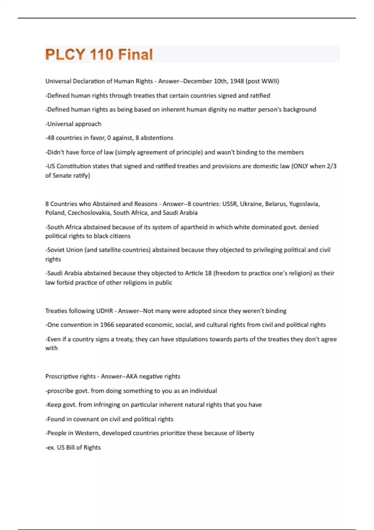 PLCY 110 Final Exam Study Guide Questions and Answers with complete solution