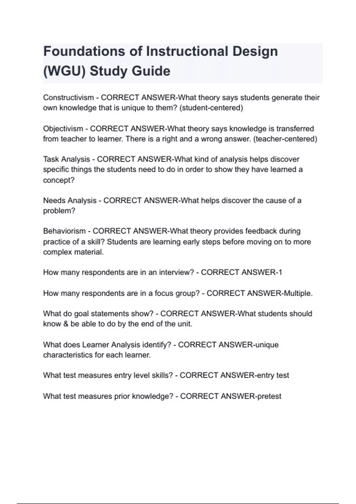 Foundations of Instructional Design (WGU) Study Guide questions & answers