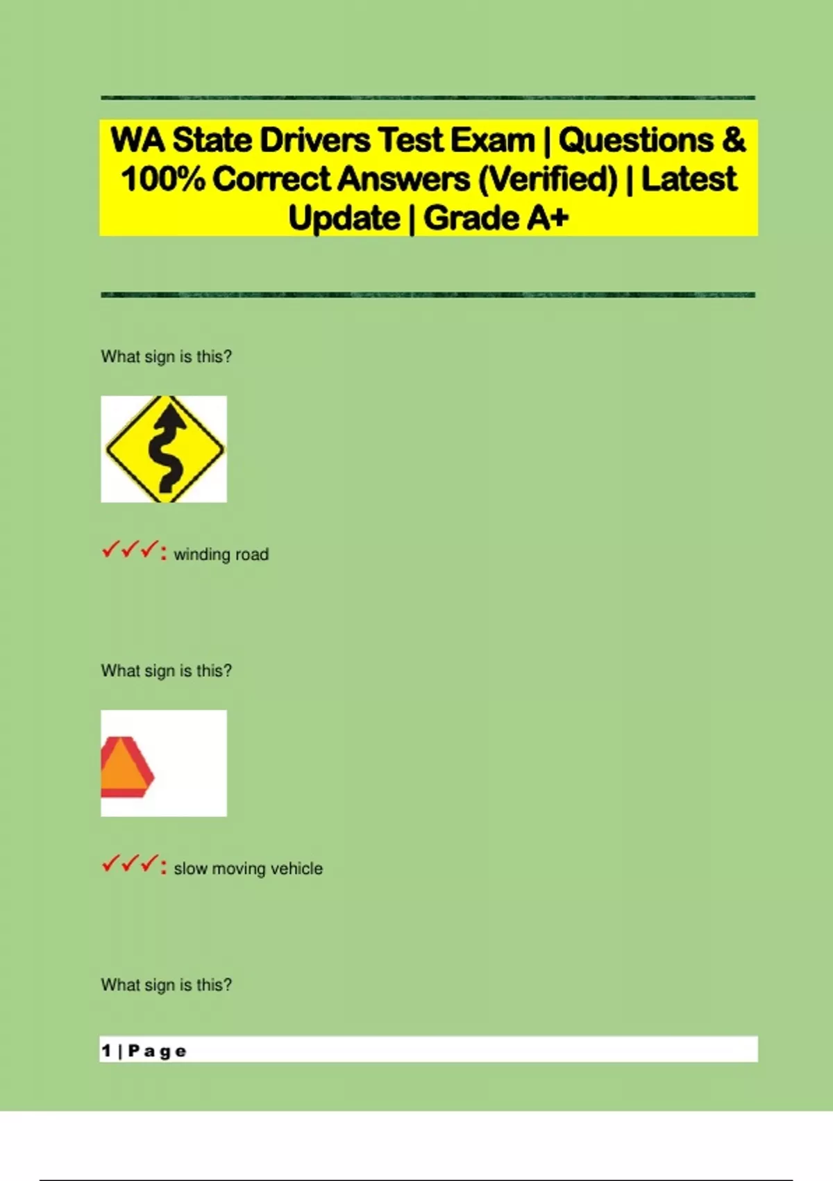 Washington Driving Exams Pack | Questions & 100% Correct Answers (Verified) | Latest Update | Grade A