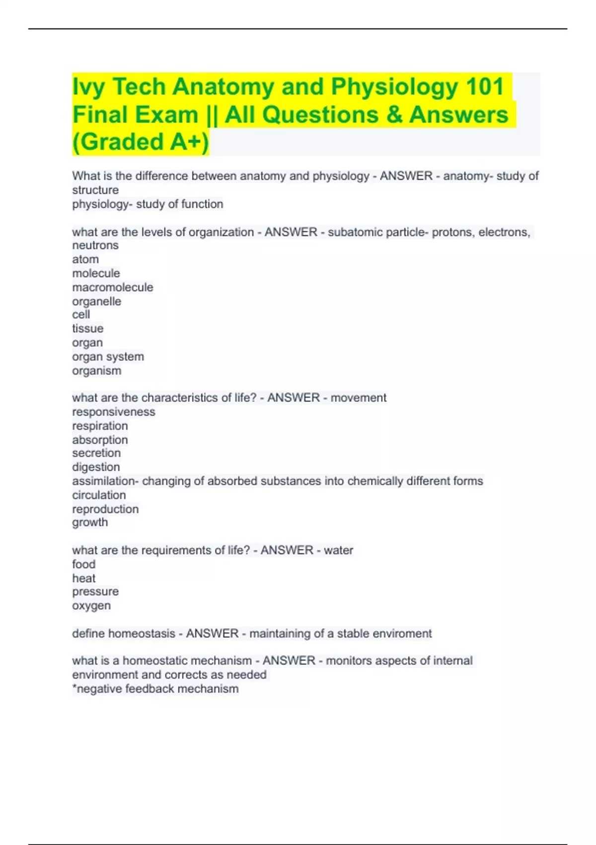 APHY 101 Ivy Tech Final Exam Study Guide BUNDLE (PACKAGE DEAL) || With Complete Questions & Answers (100% Correct - Graded A+) || Guaranteed Pass!!APHY 101 Ivy Tech Final Exam Study Guide BUNDLE (PACKAGE DEAL) || With Complete Questions & Answers (100% Correct - Graded A+) || Guaranteed Pass!!APHY 101 Ivy Tech Final Exam Study Guide BUNDLE (PACKAGE