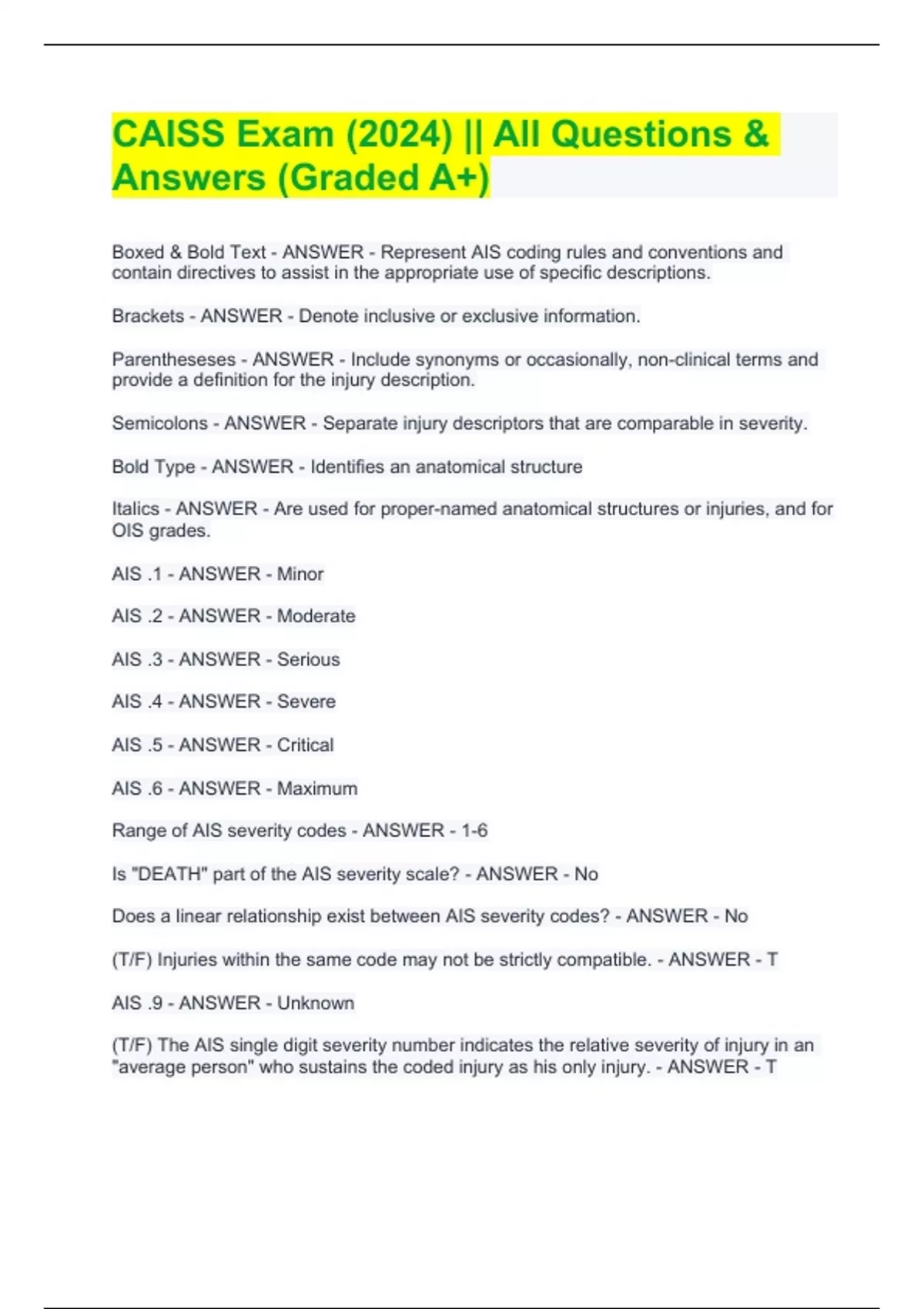 CAISS Comprehensive Exam BUNDLE (PACKAE DEAL)|| With Complete Questions & Answers (Graded A+) || Guaranteed Pass!!