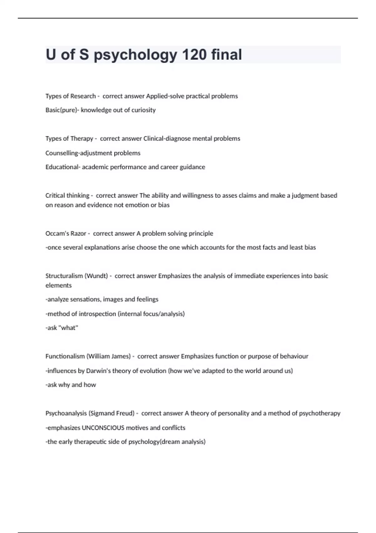 PACKAGE DEAL OF PSY 120 QUESTION AND ANSWERS 100% CORRECT 2024