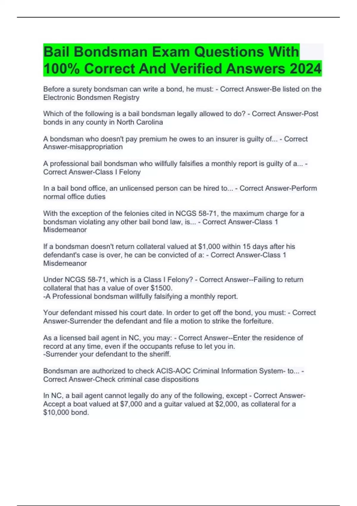 Package deal for Bail Bondsman Exam Questions With 100% Correct And Verified Answers 2024