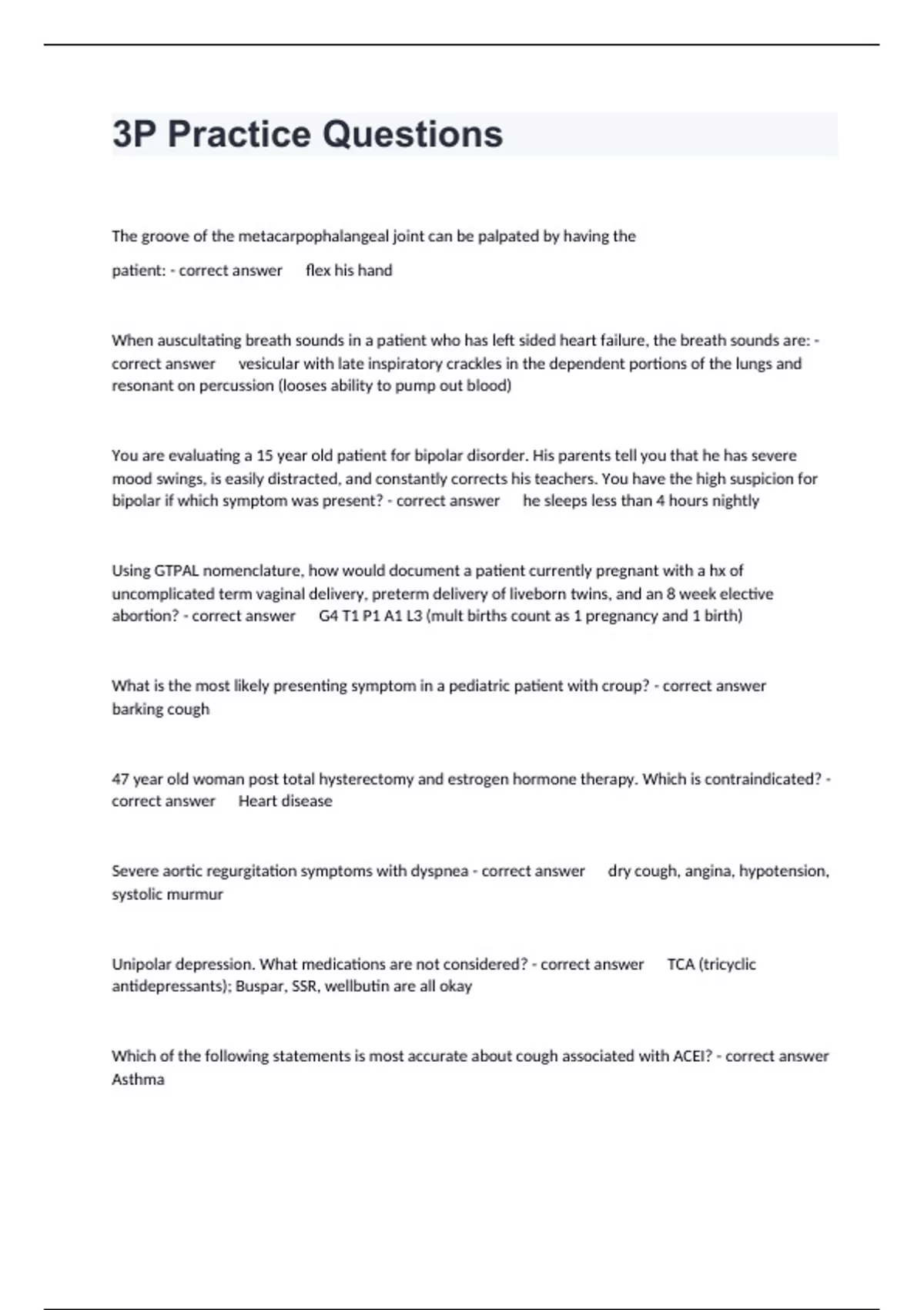 1 Exam (elaborations) ns & Guaranteed Answers. 2 Exam (elaborations) 3P Urology Latest Complete Solution Guide With All Correct Answers. 3 Exam (elaborations) 3P Psychiatric Study Questions And Well Elaborated Answers. 4 Exam (elaborations) 3P Dermatology Exam Questions With Detailed Answers. 5 Exam (elaborations) 3P Psychiatry Complete Guide W