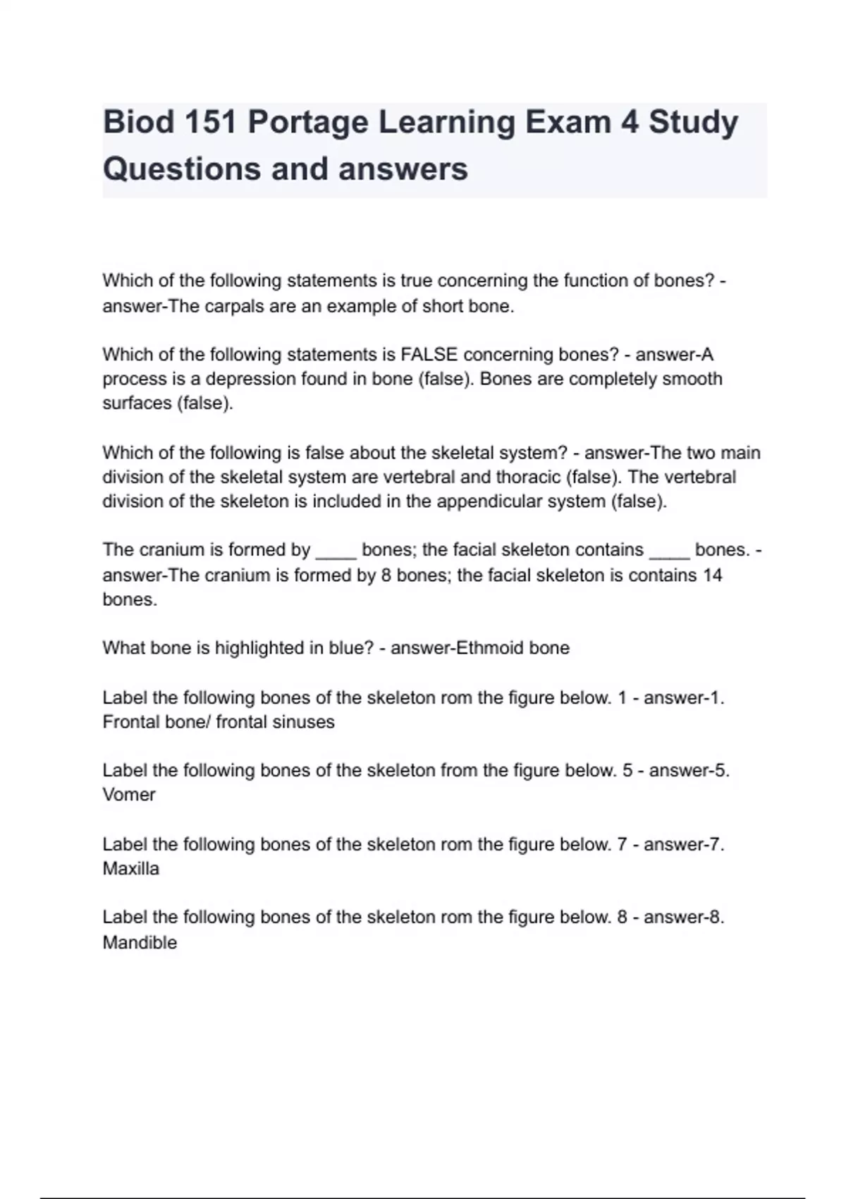 Biod 151 Portage Learning Exam 4 Study Questions and answers with complete solution