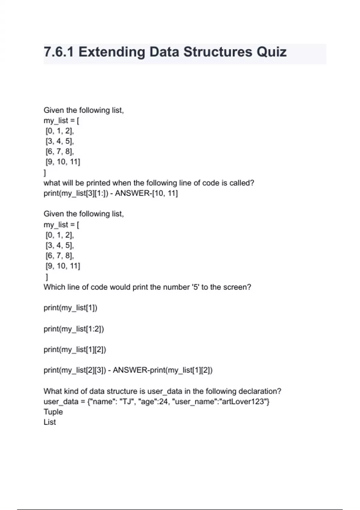 7.6.1 Extending Data Structures Quiz. with complete solution