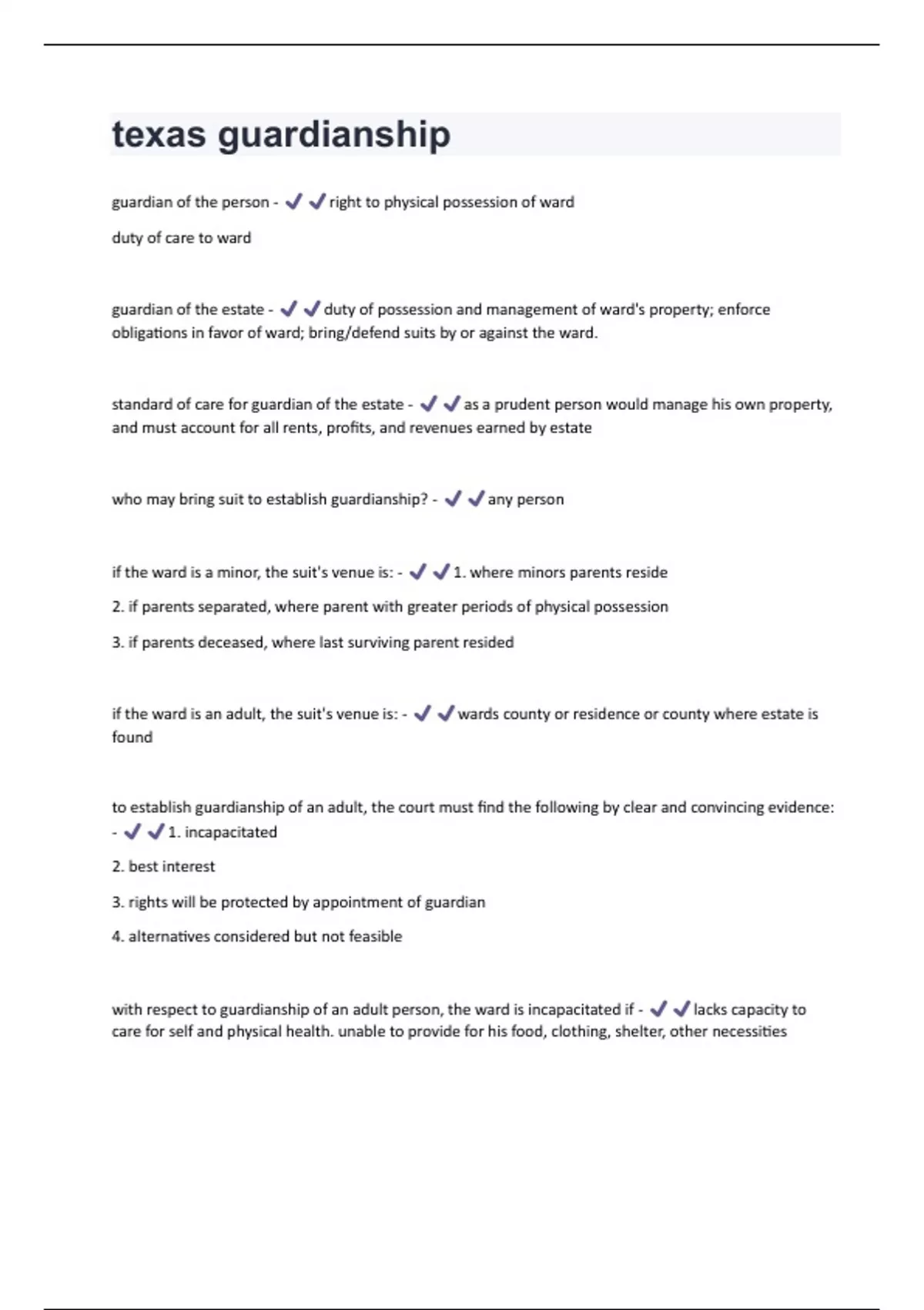 Guardianship - TX Bar Exam 2024 Questions And Answers Solved 100% Correct!!