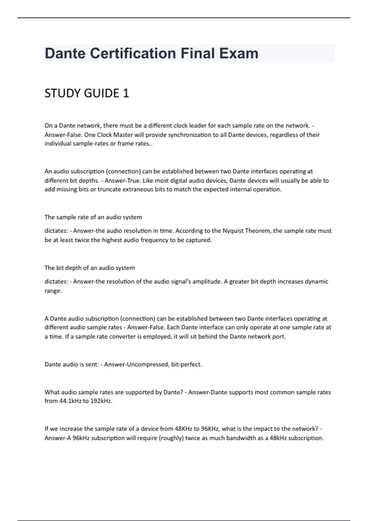 Dante Certification Level 2 (2nd Edition) Questions And Answers.
