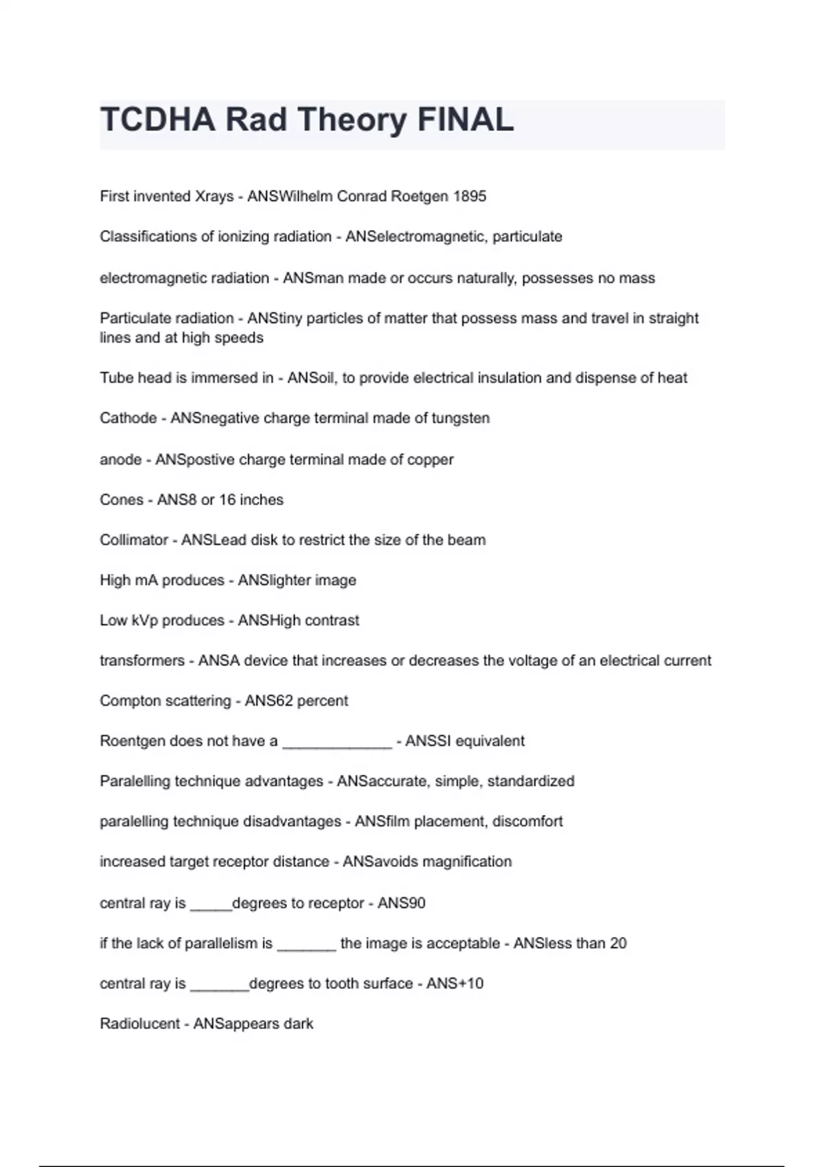 TCDHA Rad Theory-Weeks 10-15 questions and answers graded A+ by experts 2024/2025