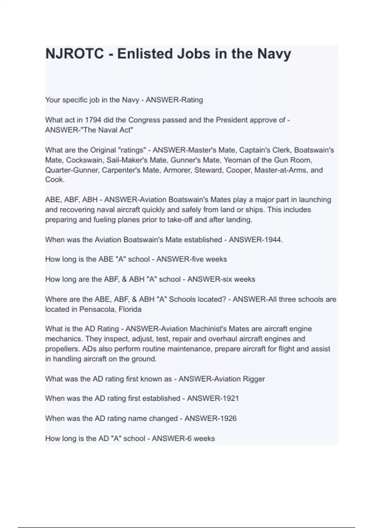 NJROTC - Enlisted Jobs in the Navy with complete solution