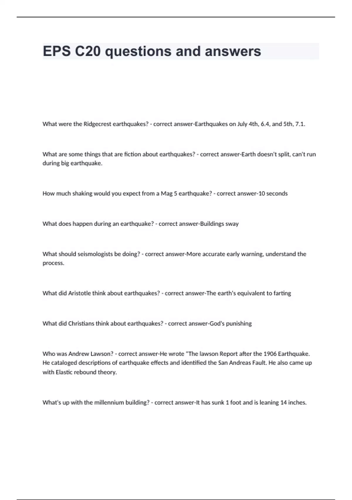 EPS C20 FINAL QUESTIONS AND ANSWERS package deal