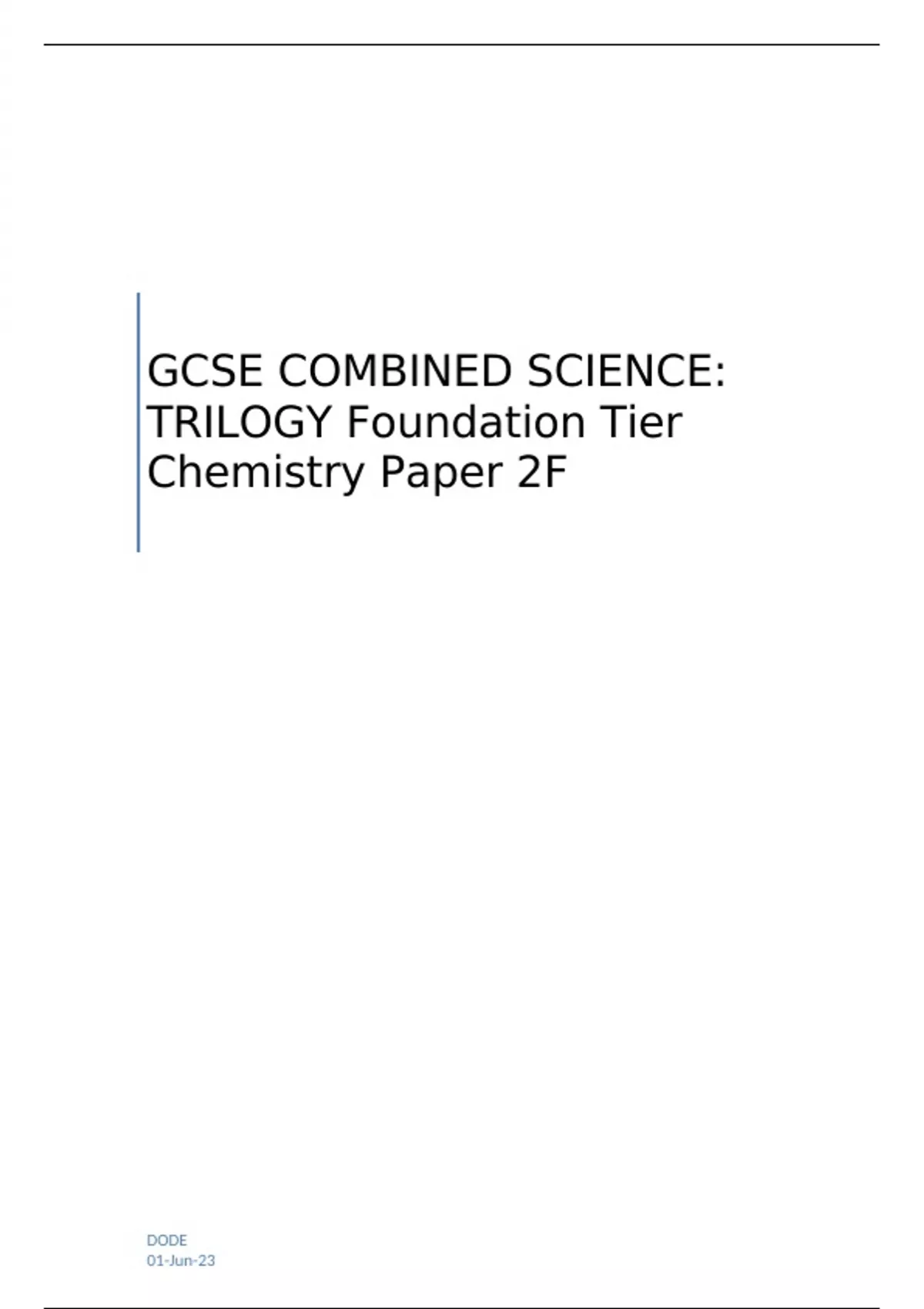 AQA GCSE COMBINED SCIENCE: TRILOGY Chemistry Paper 2F QUESTION PAPER AND MARK SCHEME FOR JUNE /C/2F