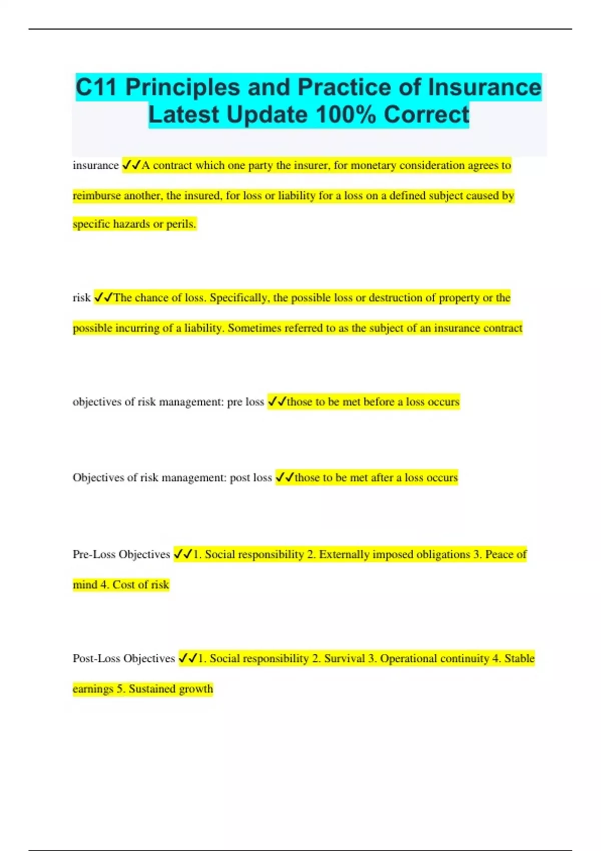 C11 Principles and Practice of Insurance Bundled Exams Latest Updates (Complete and Accurate)