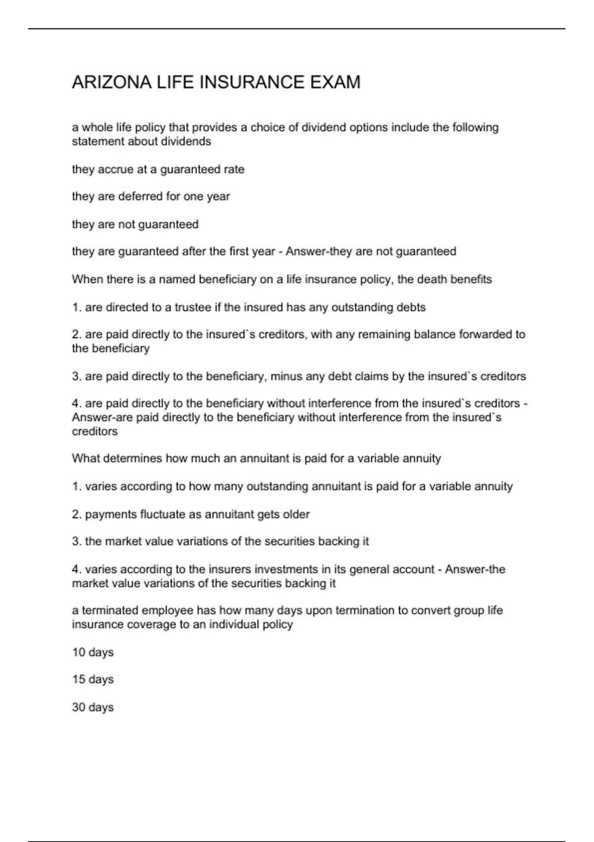 ARIZONA LIFE INSURANCE EXAMS BUNDLE