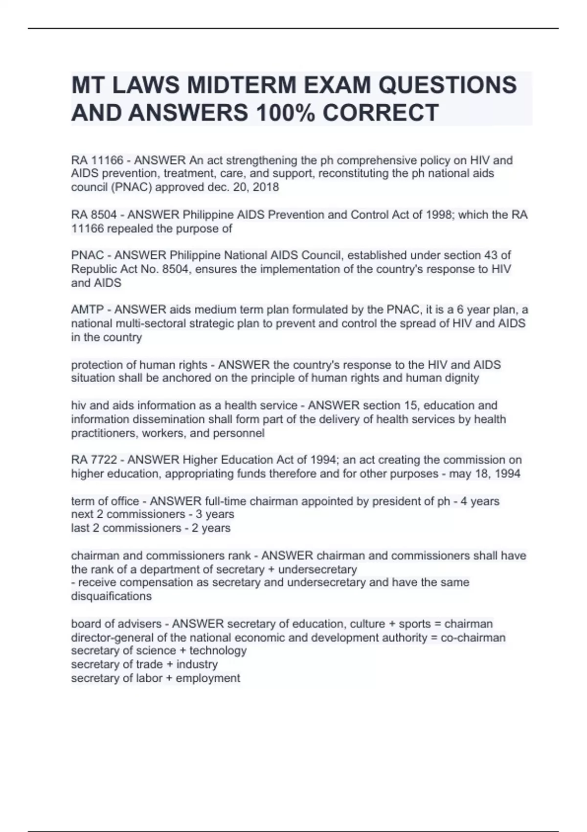 MT LAWS EXAM BUNDLE| WITH COMPLETE QUESTIONS AND ANSWERS 100% CORRECT