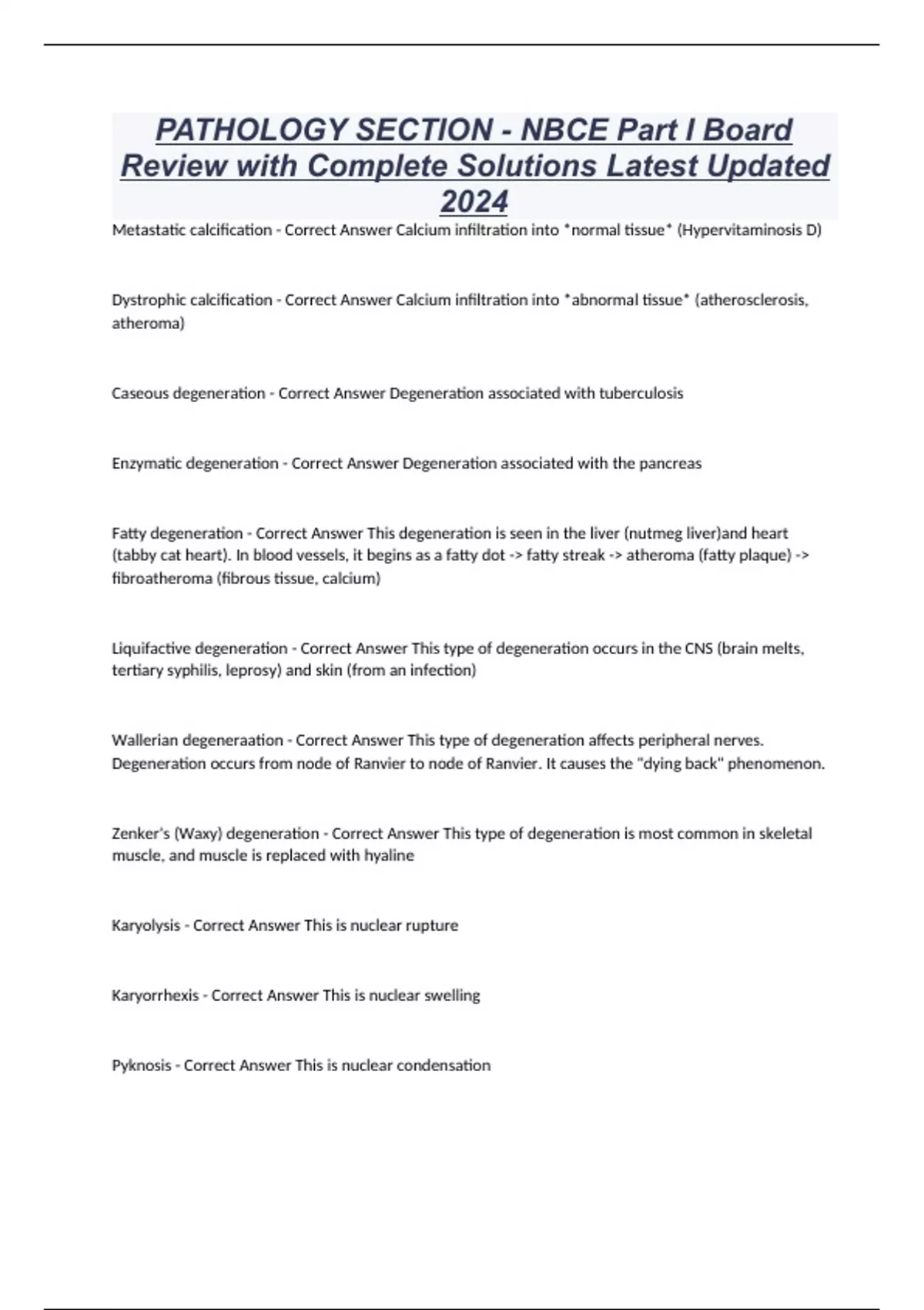 PATHOLOGY SECTION - NBCE Part I Board Review with Complete Solutions Latest Updated 2024