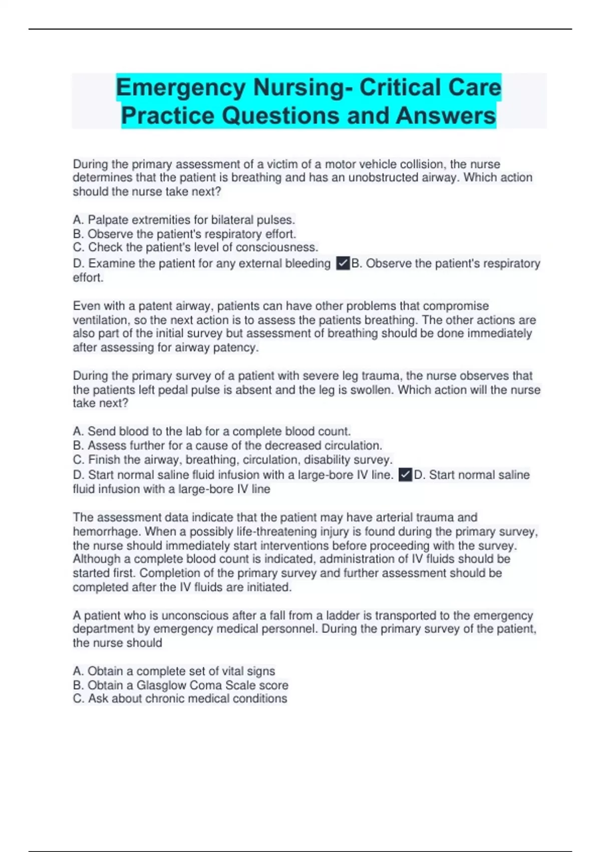 The Certified Emergency Nurse (CEN) Q&A Bundle is your ultimate resource for mastering the knowledge and skills required to excel in emergency nursing and ace the CEN exam. It serves as your comprehensive study companion, providing targeted practice questions, detailed explanations, and invaluable insights to help you succeed.