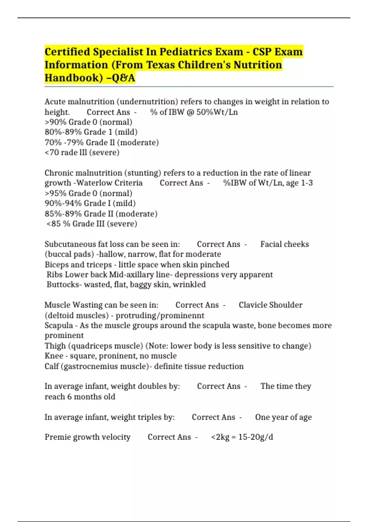 BUNDLE::- CSP EXAMS - CERTIFIED SPECIALIST IN PEDIATRIC NUTRITION