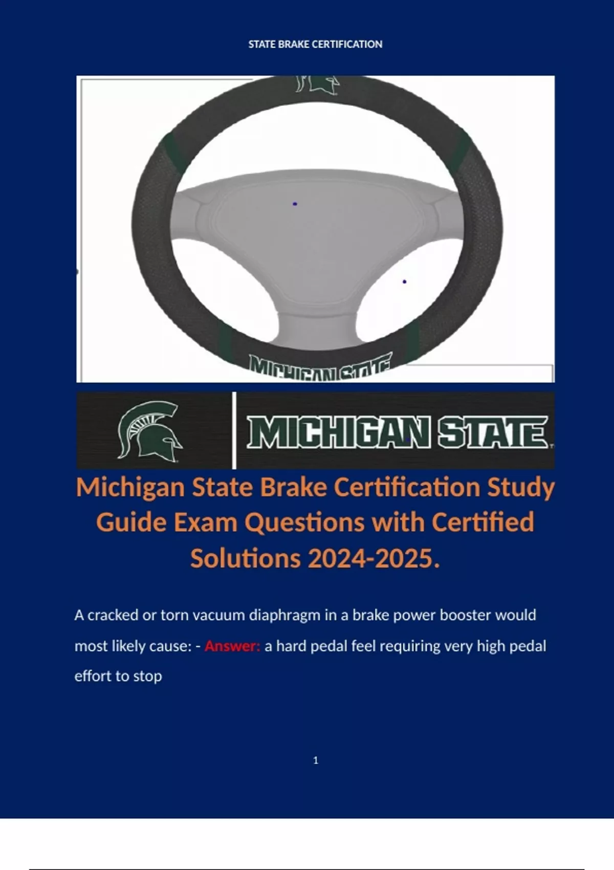 Michigan State Brake Certification Study Guide Exam Questions with Certified Solutions .