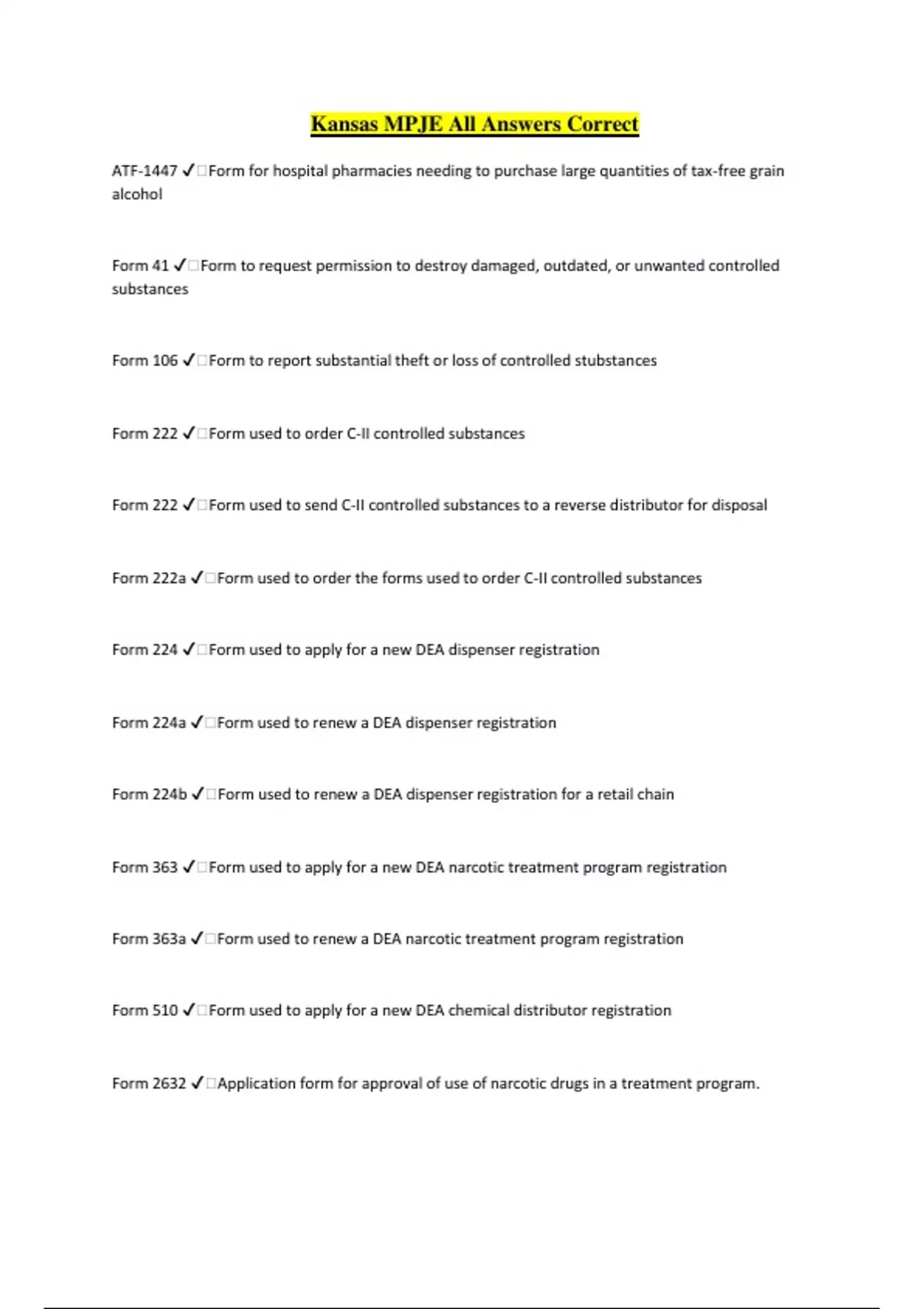 Kansas MPJE / Pharmacy Package Solution Already Rated A
