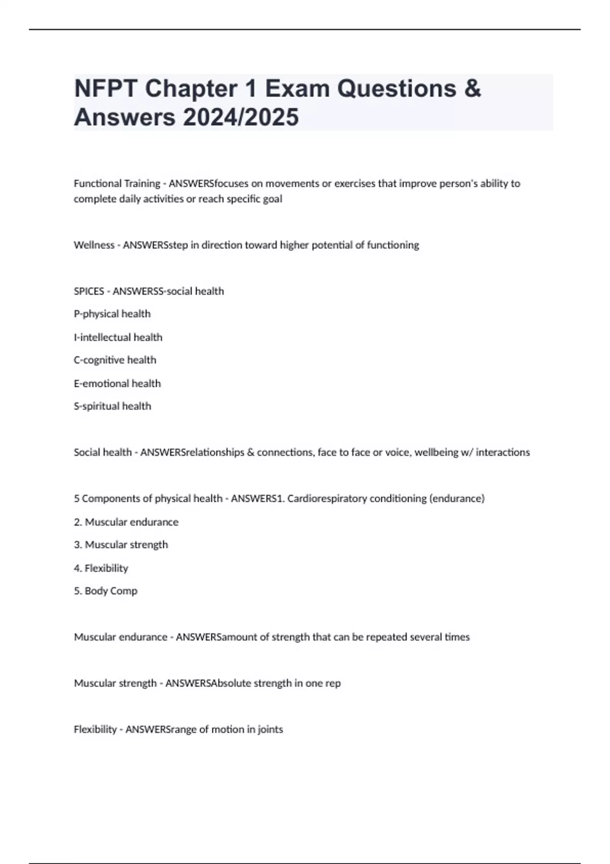 NFPT Chapter 1 Exam Questions & Answers 2024/2025