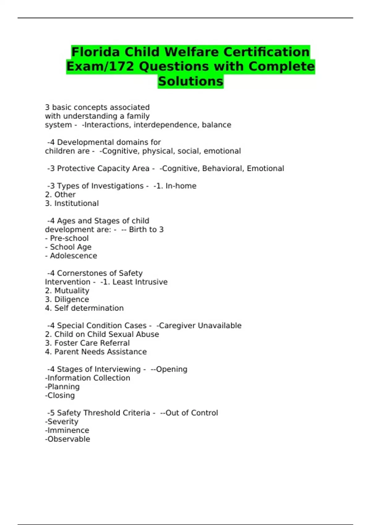 Florida Child Welfare Exams - Questions and Answers - Bundle