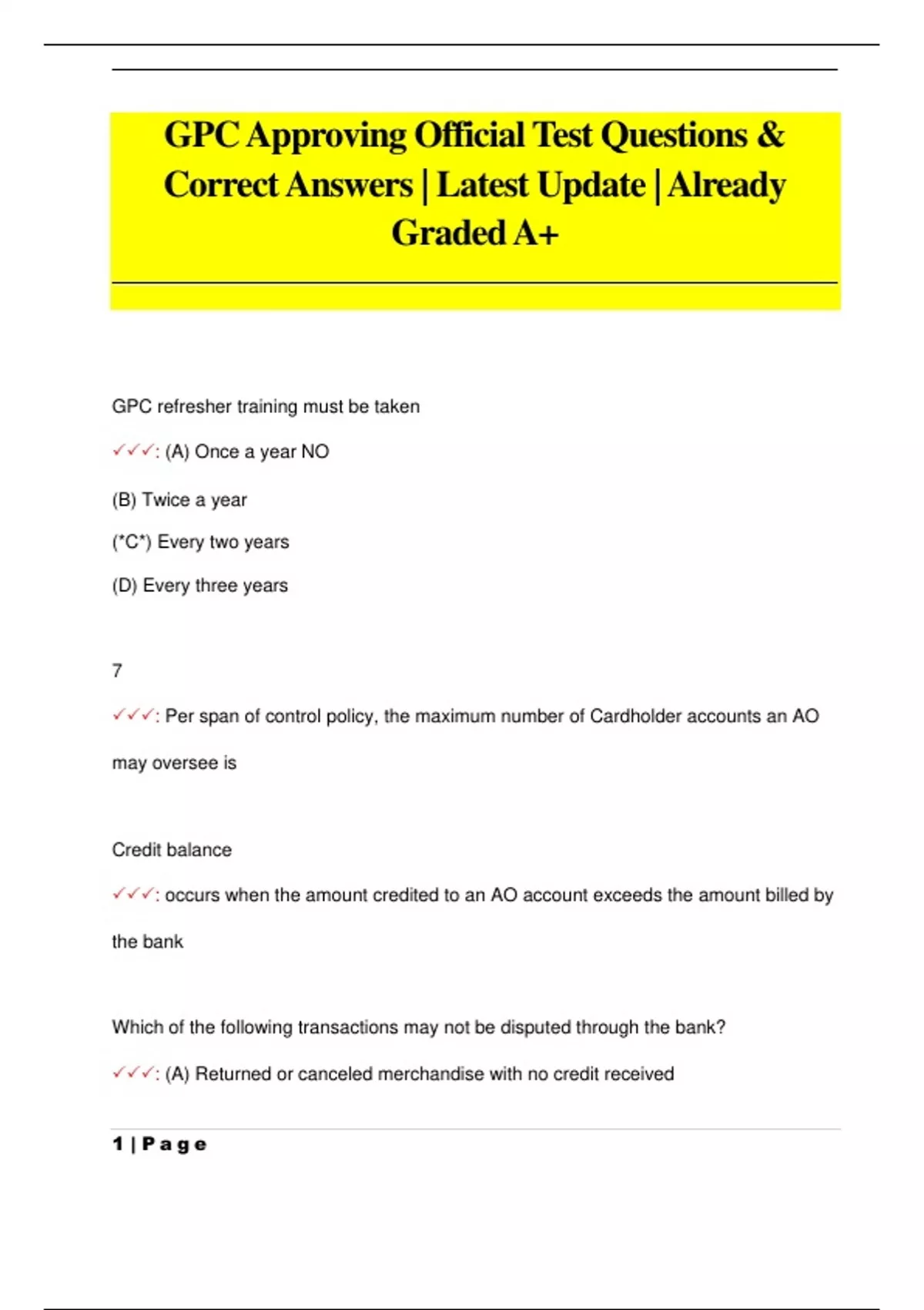 GPC Questions Pack& Correct Answers | Latest Update |Already Graded A+