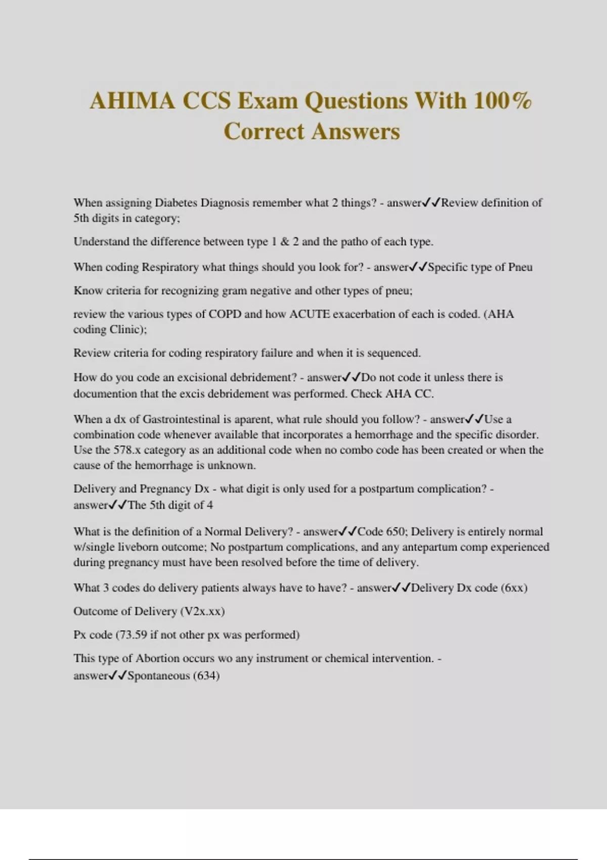 AHIMA CCS Exam Questions With 100% Correct Answers