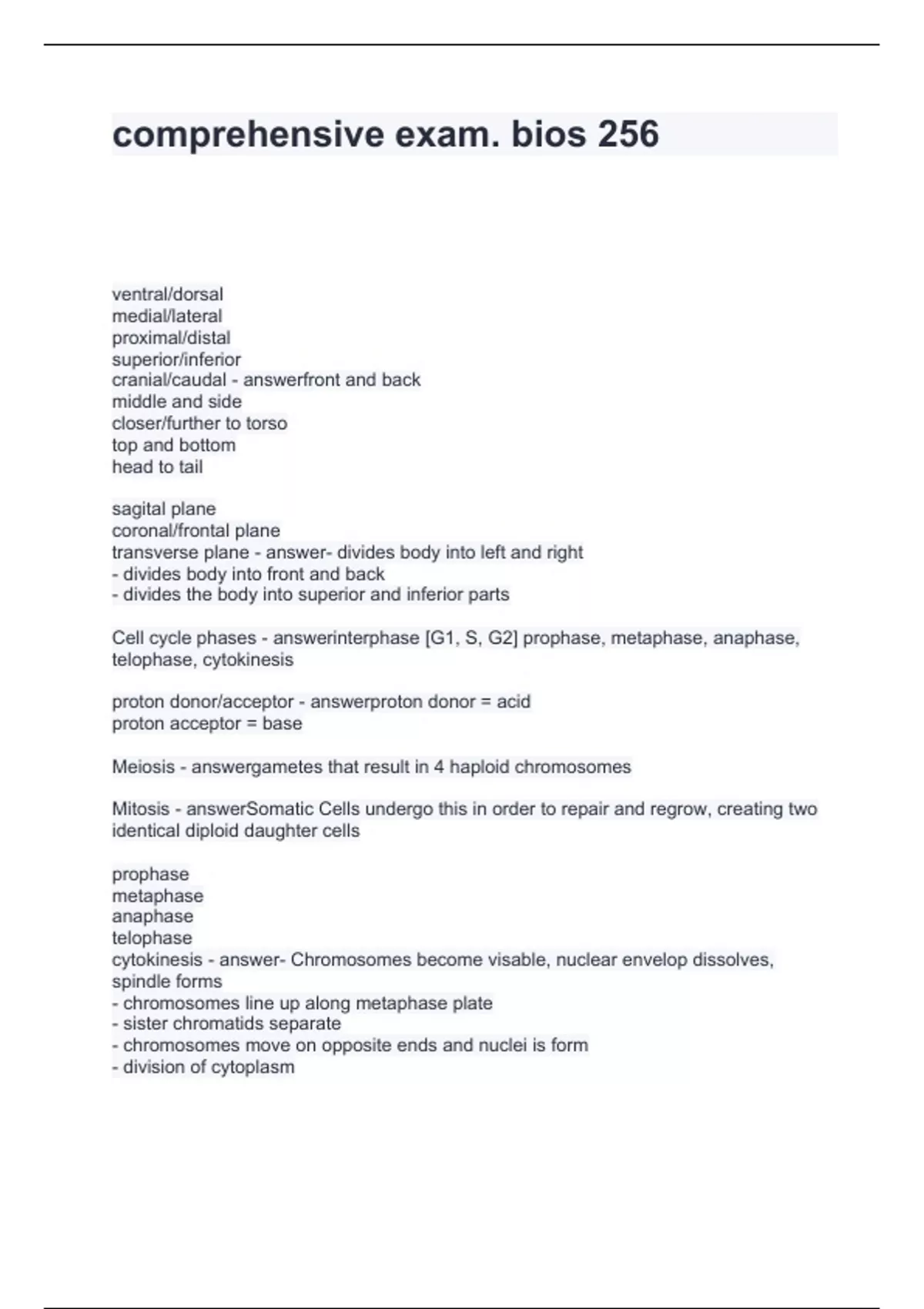 Exam (elaborations) ATI Comprehensive Final Quiz Questions and Answers 100% correct Exam (elaborations) BIO 256 Exam 2 Questions and Answers Graded A+ Exam (elaborations) Bio 256 Final Exam Guide Questions and Answers Latest Updated Exam (elaborations) Bio 256 Final Exam Test Questions and Answers 100% Correct Exam (elaborations) BIO 256 F
